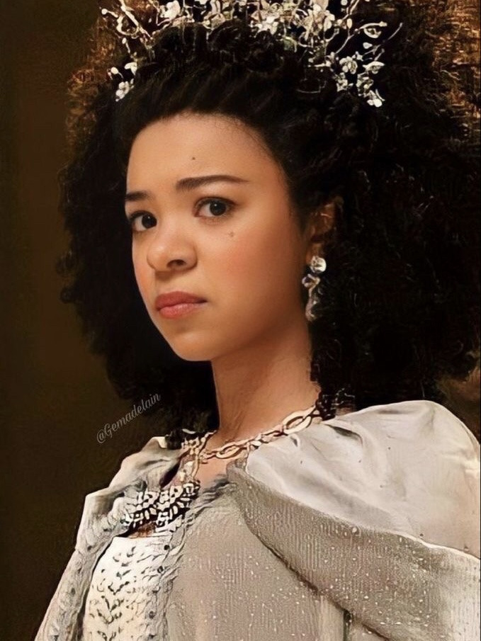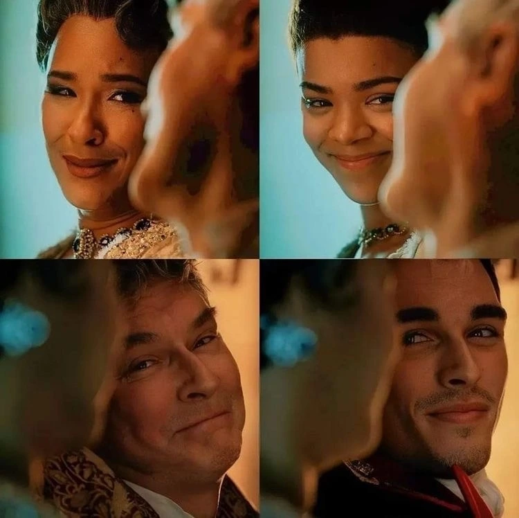 원작과의 차이는 모르겠지만 <브리저튼> 시리즈에서 가장 충격적인 캐릭터가 바로, 샬럿 왕비다. <브리저튼> 시즌 1-2에서 결혼에 골인한 브리저튼 장녀 D(넷째)와 장남 A(첫째)는 갈색 피부 외국인과 결혼했다. 그런데 로맨스의 주인공이 (적어도 한 명은) 갈색 피부인 것이 2020년대 드라마의 디폴트*가 된 지금, 이 사실이 뷰포인트여서는 안되지만 배경이 19세기 영국 섭정기라는 설정과 부딪힌다?