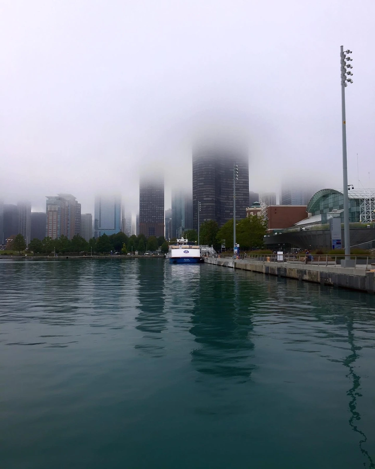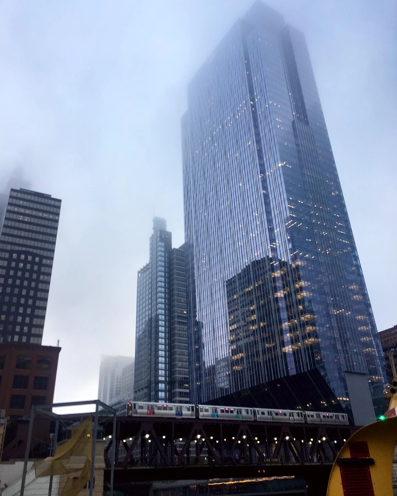 네이비피어에서 출발해 미시건 호수로 긴 호를 그리며 나아갔던 배에서 고층 건물로 빽뺵한 시카고의 전경을 볼 수 있었다. 하지만 그 시각, 강 하류는 건물들의 저층부만 살짝 보이는 상태. 우중충했지만 건물의 윤곽 전체가 보였던 전날과는 또 다른 풍경이었다. 그런데 그게 다는 아니었다. 강을 거슬러 올라가면서 눈에 익은 스카이라인이 안개 속에 묻혀있는 장면을 지나 배를 돌리는 합류지점까지 왔을때는 안개가 걷혀있었다. 정확히는 하류만 안개에 잠겨있었던 것이다. 오후 5시 반, 배가 출발할 때는 어두웠는데 안개존을 벗어나니까 6시가 넘었는데도 햇빛이 고층 건물의 창문 또는 외벽을 빛내고 있었다.