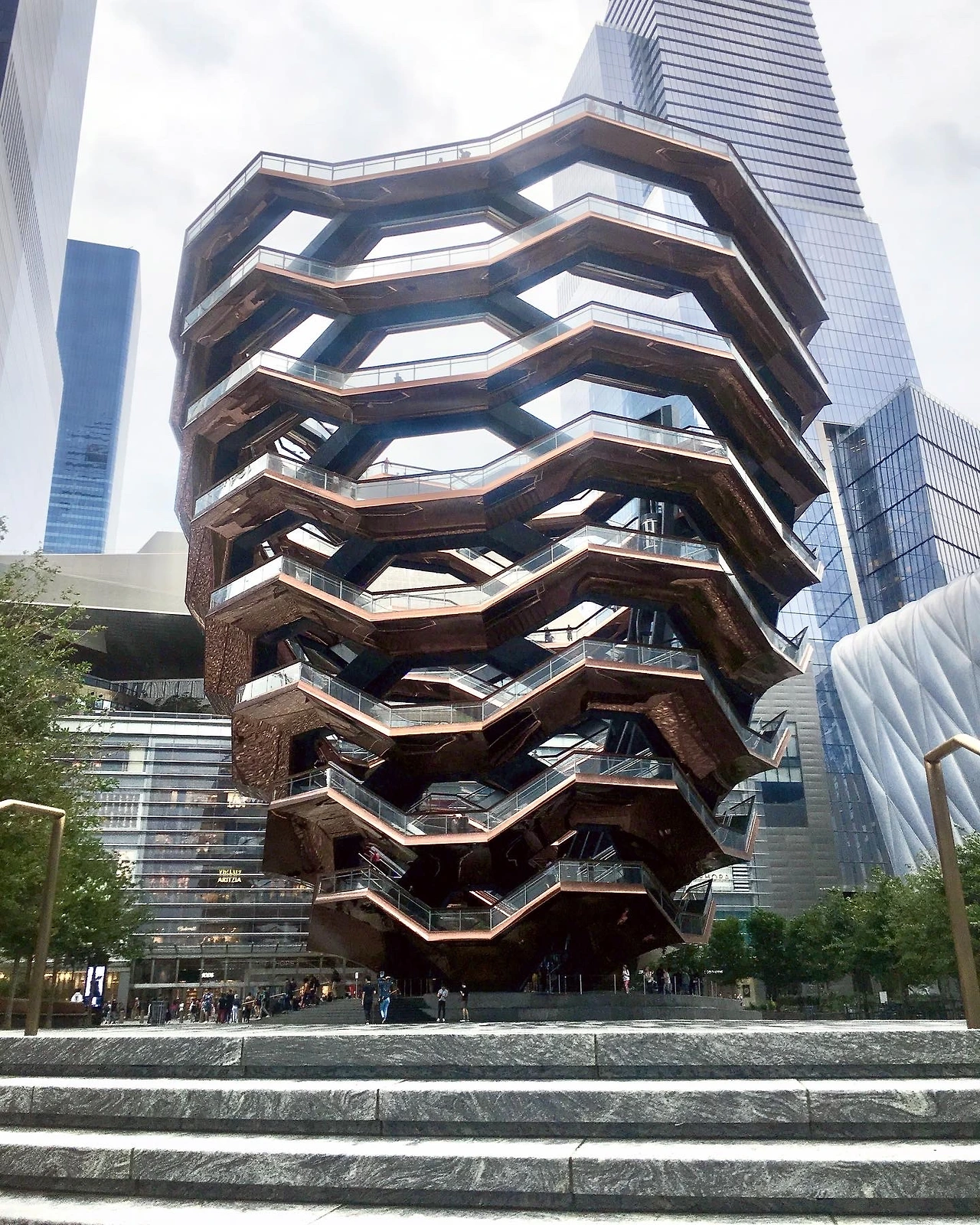 플로리다 노튼 미술관과 함께 2019년 주목할만한 신축 랜드마크가 이 길의 끝에 있었다. 자동으로 움직이는 것처럼 보인다고 하는 '쉐드'이다. 막상 실제 위치에 와보니 거대한 빗살무늬 토기 모양의 구릿빛 계단 구조물인 '베슬/베셀'이 시선강탈을 했다.