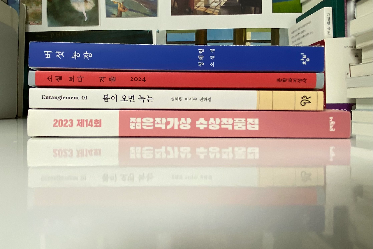 마치 예고편처럼 사실은 긴 이야기를 (병풍 접듯이 접어서) 담아내거나 중편에 가까운 (도톰한) 단편을 좋아했던 시간을 지나 환장하는 시그니처를 가진 작가들을 만났다. 마침내 (미루고 미루던) 단편집 <버섯 농장>을 손에 넣었고 이후에 출간된 <소설 보다 겨울 2024>와 <봄이 오면 녹는>, <버섯 농장>의 표제작이 실린 <2023 제14회 젊은작가상 수상작품집>까지 수집했다. 성혜령 작가의 첫 소설집과 앤솔러지 세 권. 이미 상당수의 수상작을 확보했음에도 마지막에 구입한 수상작품집은 특히 잘 샀다, 라고 생각하던 와중에 ‘버섯 농장’의 해설을 읽지 않은 것이 생각났다.
