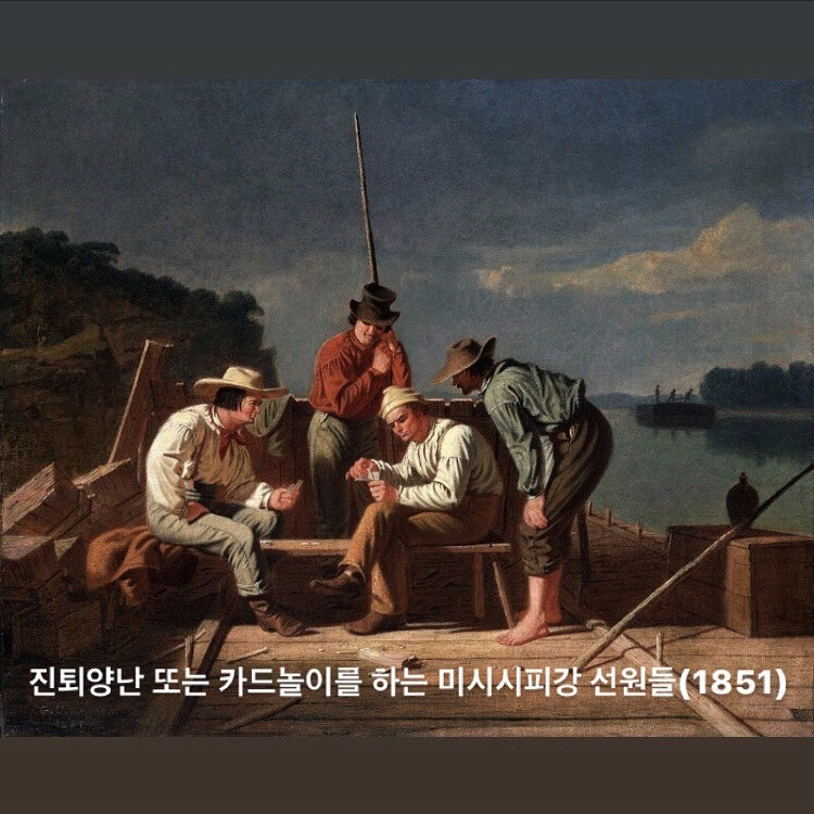 빙엄은 중서부 출신의, 중서부 풍경을 시그니처로 하는, 중서부 강 전문 풍속화가이다. 유럽 미술계는 물론이고 뉴욕에서도 유명한 화가는 아닌 듯 하여 한글 자료를 기대하지 않았다. 하지만 워싱턴과 뉴욕 양쪽의 거대 미술관에서 시선강탈을 했던 작품이고, 그러므로 윈슬로 호머처럼 미국에서는 상당히 알려진 화가일테니 당연히 영어 자료가 많을 거라 믿고 가벼운 마음으로 구글링을 했다.