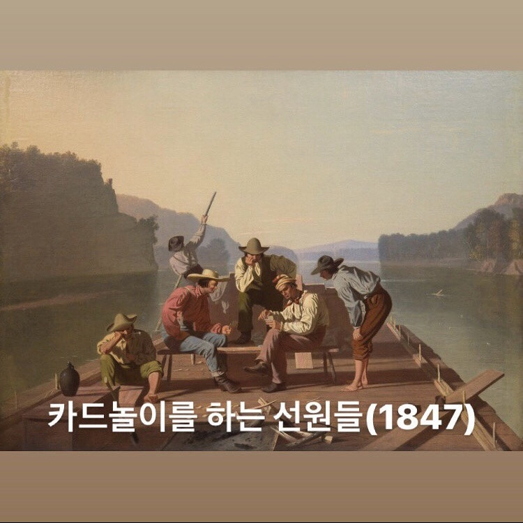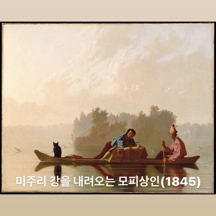 워싱턴 내셔널 갤러리 사진첩에서 발견한, 미국 화가 조지 칼렙 빙엄(1811-1879)은 미주리강과 미시시피강의 풍속화를 그린 19세기의 대표 화가이다. 뉴욕 메트로폴리탄 미술관 사진첩에도 그의 시그니처가 드러난 그림이 보이길래 구글렌즈로 찾아보니 같은 화가, 거의 같은 시기의 작품이었다. 이와 같이 시그니처의 물증을 확보할수록, 자신감과 함께 안목이 더욱 날카로워짐을 알 수 있었다.