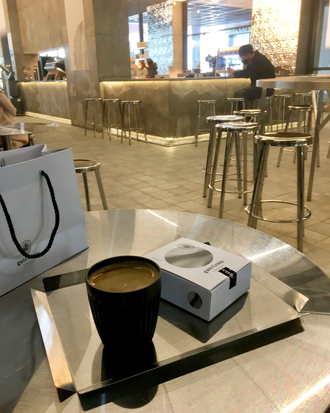 <구테로이테>라는 이 카페 또는 커피 바는 뉴욕 맨해튼 터미널(그랜드 센트럴, 포트 오소리티, 펜 스테이션 등)의 주변에서 출퇴근길의 커피 한 잔을 했던 기억을 불러주었다. 그러니 이게 독일어... 인가?라고 뇌가 뜸을 들일 수밖에. 입구는 강남스타일 (또는 합정역과 왕십리역이 대표적인 수도권의 흔한 주상복합건물 스타일)이었는데 내부는 좀 맨해튼 미드타운 스타일 (또는 조금 잘 나가는 미국의 대도시 유동인구 많은 지역 스타일)이네?
