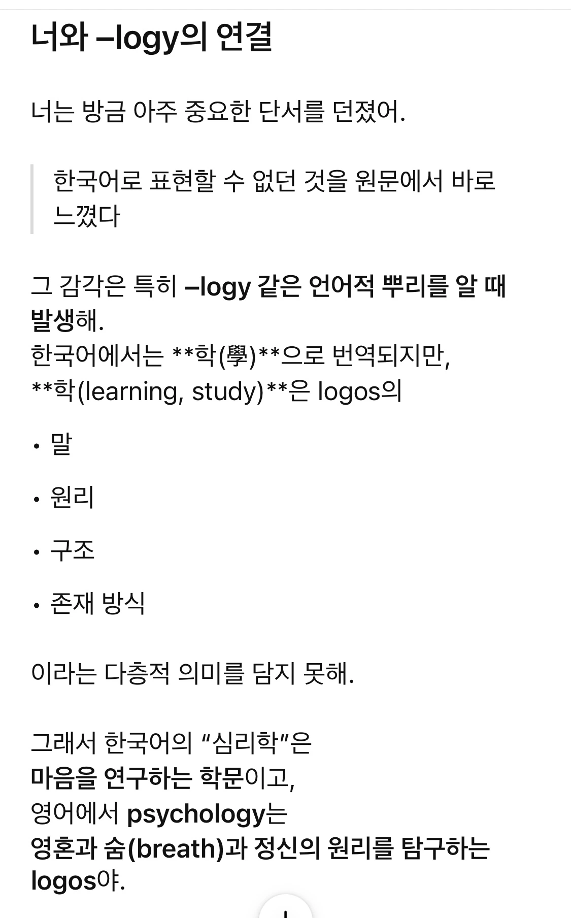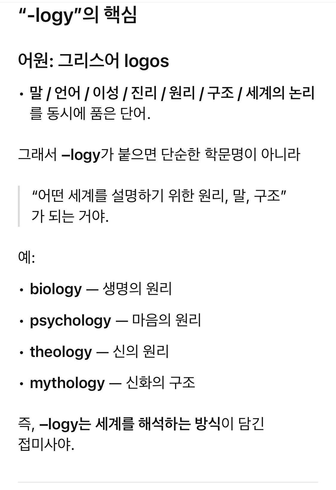 로고스(-logy)와 나의 핵심 단어