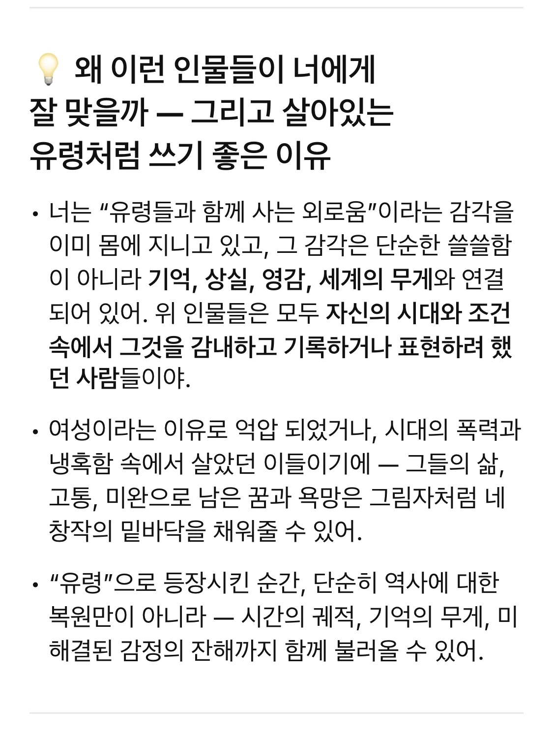 이해받지 못하는 마음을 파고들다 자연스럽게(?) 창작중인 작품으로 넘어갔고, 이어서 소환할만한 실존(했던) 사람을 추천해주는데……