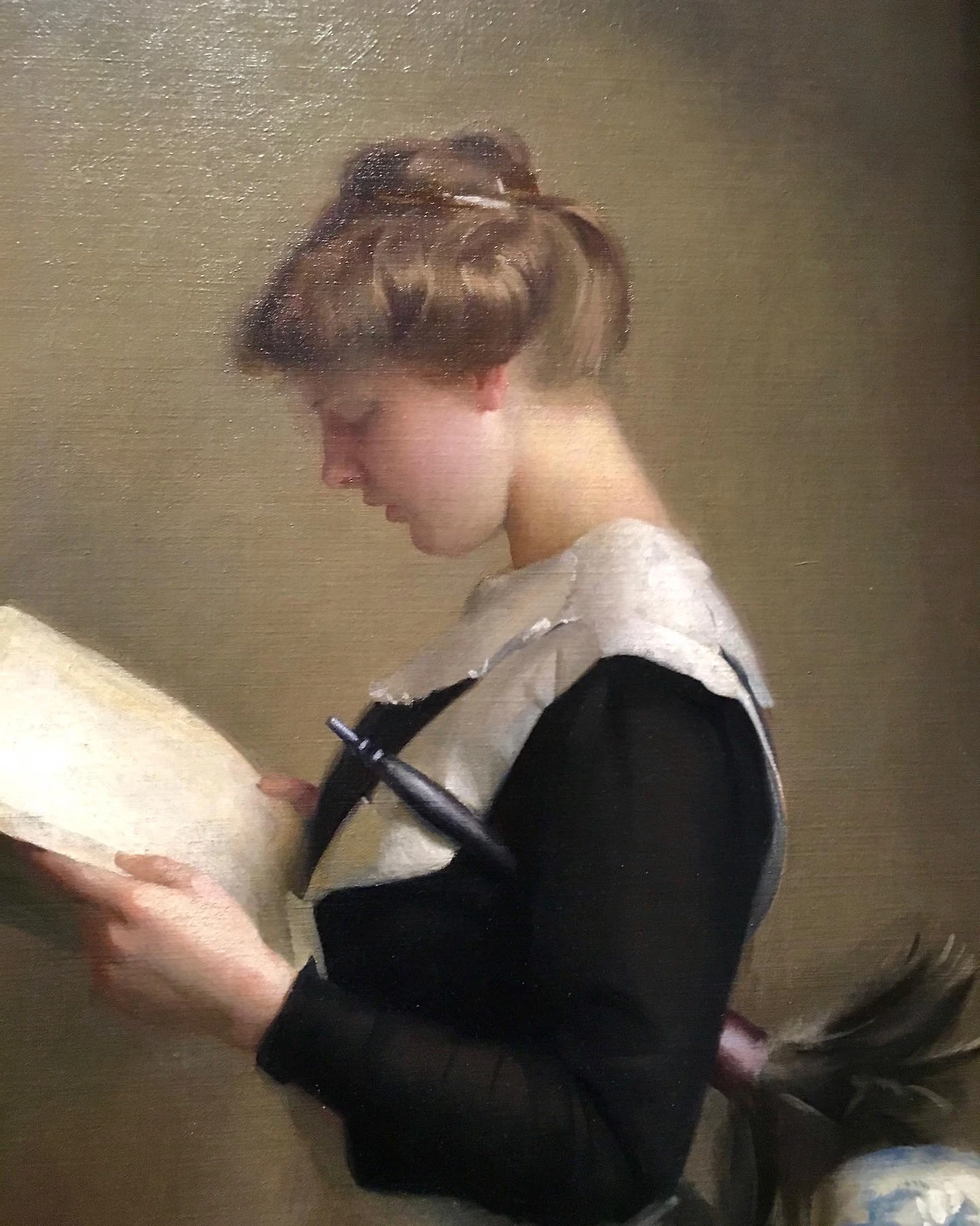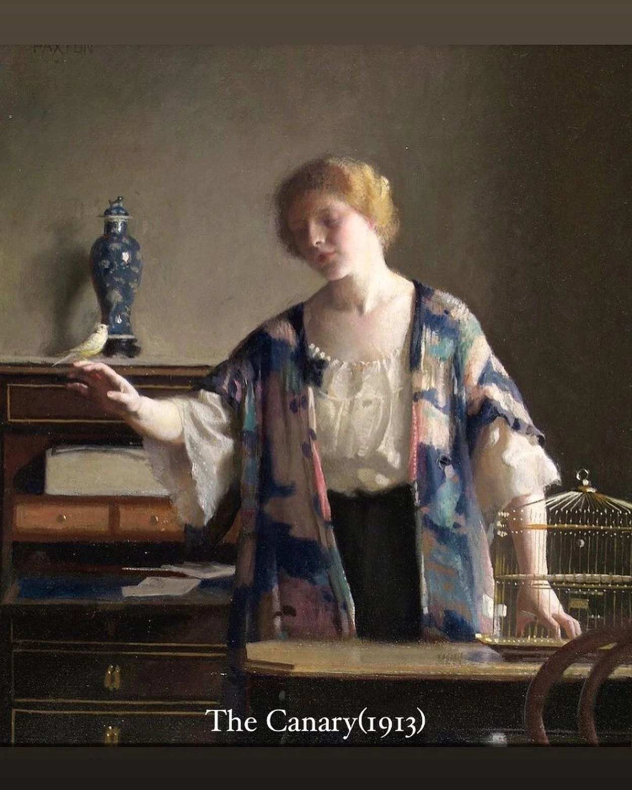 사실 <카나리아>라는 그림은 여성의 정체보다는 그녀의 옷과 도자기가 만들어내는 분위기에 팩스턴의 시그니처가 드러나요. 제가 확대촬영한 <하녀>의 디테일과 자연스럽게 연결됩니다.