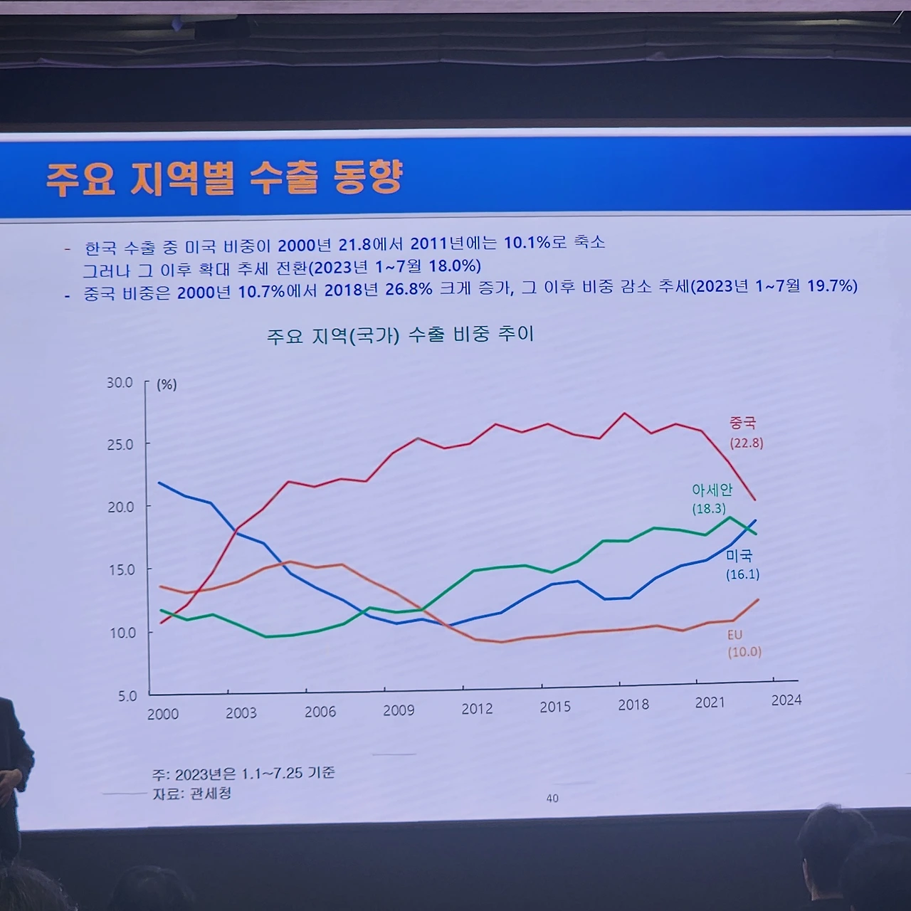 (2) 중국 2000년 10.7% 2018년 26.8% 2023년 19.7%