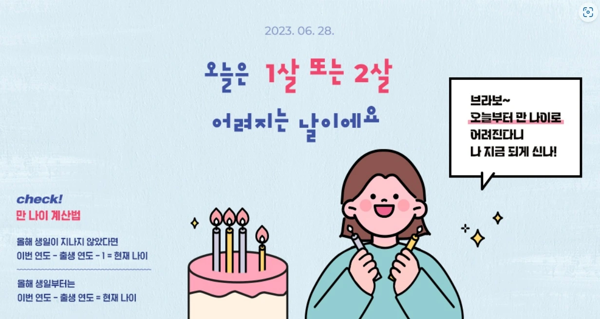오늘부터 Global 화에 일조하고자 한국민들의 공식적인 나이를 만 나이로 한다고 한다. 필자는 잘했다고 칭찬해 주고 싶다. 외국인과 만나면 그들은 이미 한국나이가 만 나이가 아닌 것을 알기에, 생년을 묻는다.