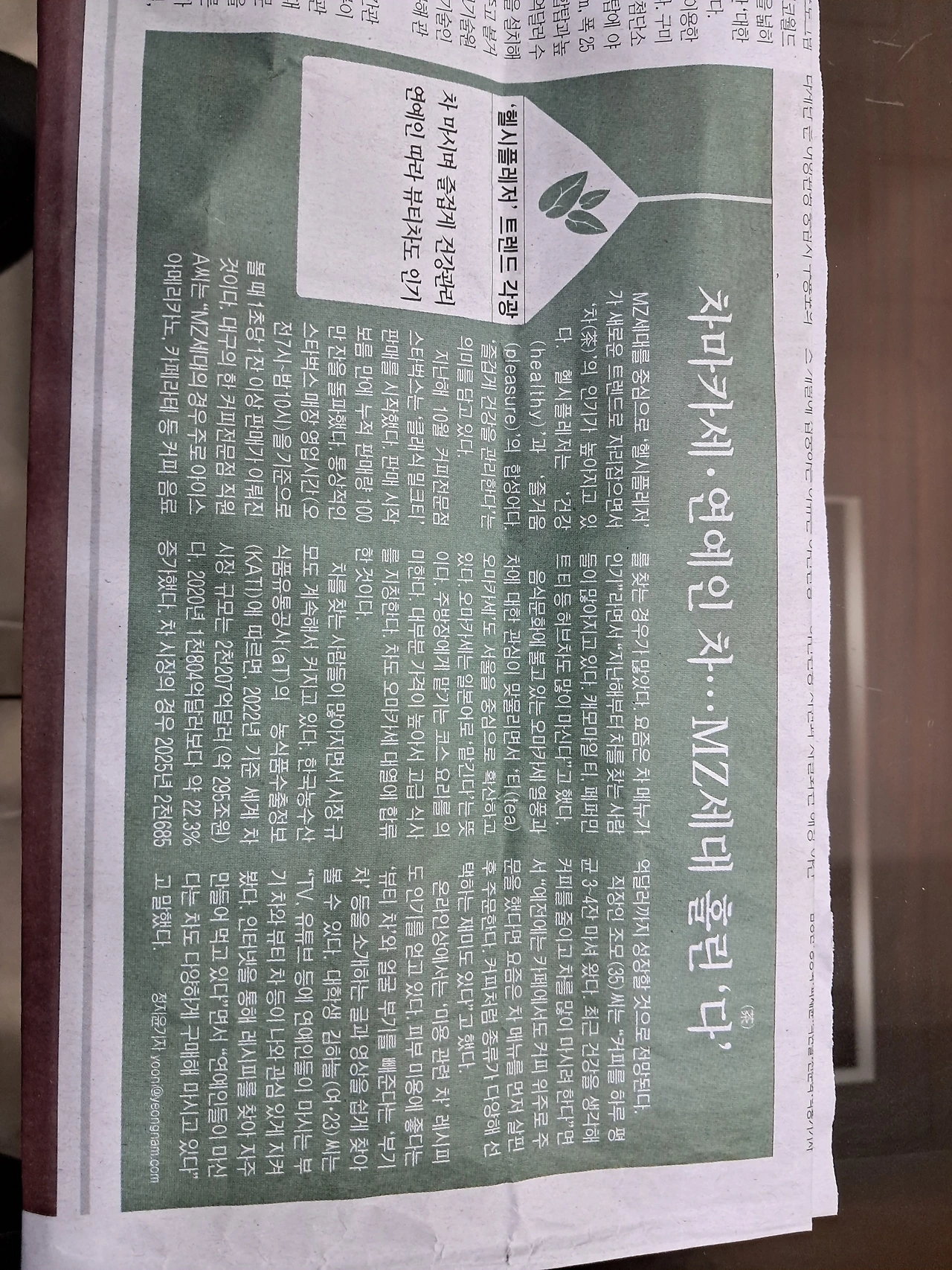 #MZ세대 #헬시플레저 #Health #Pleasure #스벅 #지난10월부터 #클래식밀크티 #판매시작보름만에 #100만잔판매돌파 #아이스아메리카노카페라테에서 #캐모마일티 #페퍼민트티등 #허브차가대세 #차마카세 #연예인차 #시장규모 #2025년 #2천685억달러전망 #미용관련차레시피인기 #뷰티차인기 #영남일보