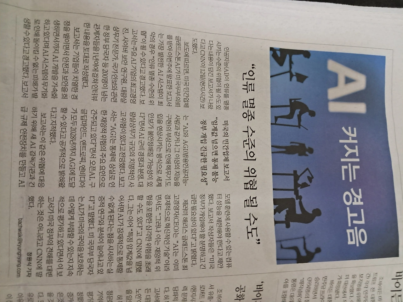 #AI #커지는경고음 #미국의민간업체보고서 #임계값넘으면통제불능 #정부개입긴급한필요성 #미국무부당국자 #AI가잠재적으로통제할수없게된다는점을시사하는실증적연구와분석이증가 #AI가미국의국익을보호하는데어떻게부합할수있는지지속적으로평가하고있음 #민간업체보고서가미국정부의견해를대변하는것은아니다라고CNN에전함 #과연? #경향신문