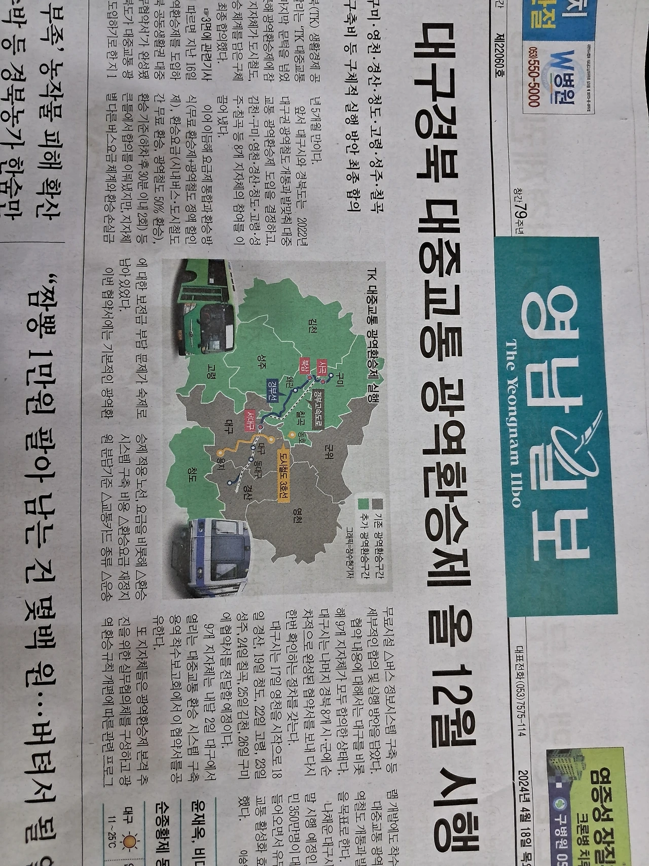#대구경북대중교통광역환승제올12월시행 #대구김천구미영천경산청도고령성주칠곡 #환승시스템구축비등구체적실행방안최종합의 #대구권광역철도개통과발맞춰오는12월시행목표