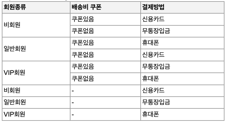 회원종류별 쿠폰 지급 시스템으로 조합 테스팅 기법 중 Pairwise Testing TC를 작성해보겠습니다.