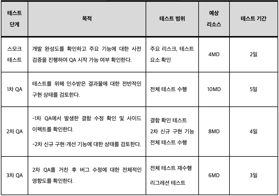② 프로젝트 계획서/요구사항을 분석하여 테스트 목적 및 테스트 범위 설정, 테스트 일정을 계획합니다.