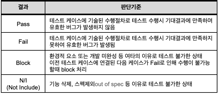 ②테스트 실행은 작성한 테스트 케이스를 바탕으로 테스트 활동을 수행하는 단계입니다. 테스트 케이스를 수행하기 전 프로젝트 정책에 따라 수행해야 하는 테스트 환경을 확인합니다. 설정된 환경에서 테스트 케이스에 기술된 단계와 테스트 데이터를 확인하고 해당 기능이 수행 절차에 따라 기대 결과를 만족하는지 실행 결과를 기록하며 테스트를 수행합니다.