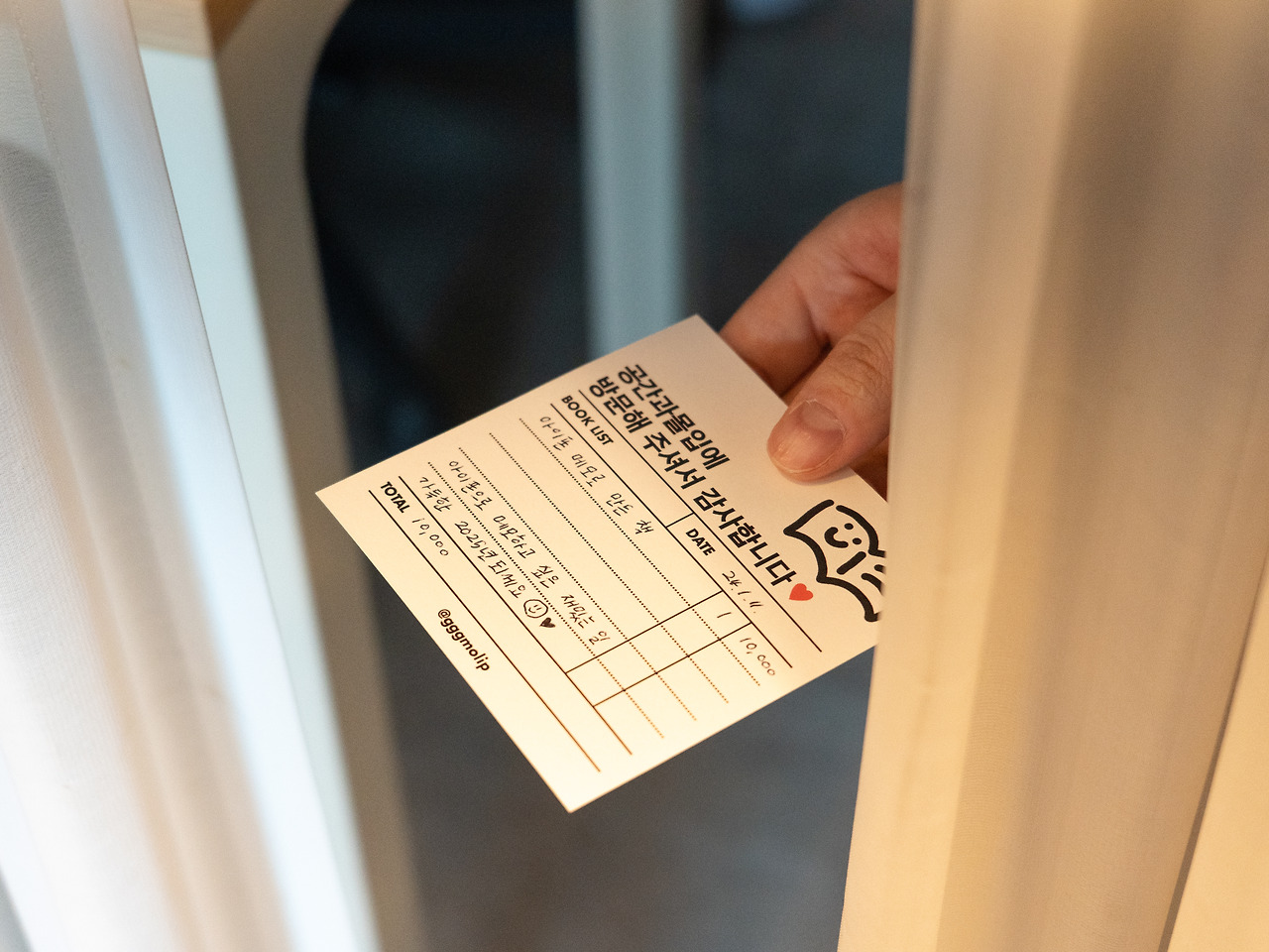 영: 제가 원래 주변 사람들에게 짧은 편지 쓰는 걸 좋아해서 자연스럽게 떠오른 아이디어인 것 같아요. 그리고 카피라이터로 일하고 있다 보니, 글 쓰는 일이 부담스럽기보단 재밌더라고요. 그래서 어떤 책을 구매하셨는지와 그 책에 어울리는 메시지를 한 줄씩 써 드리고 있어요.