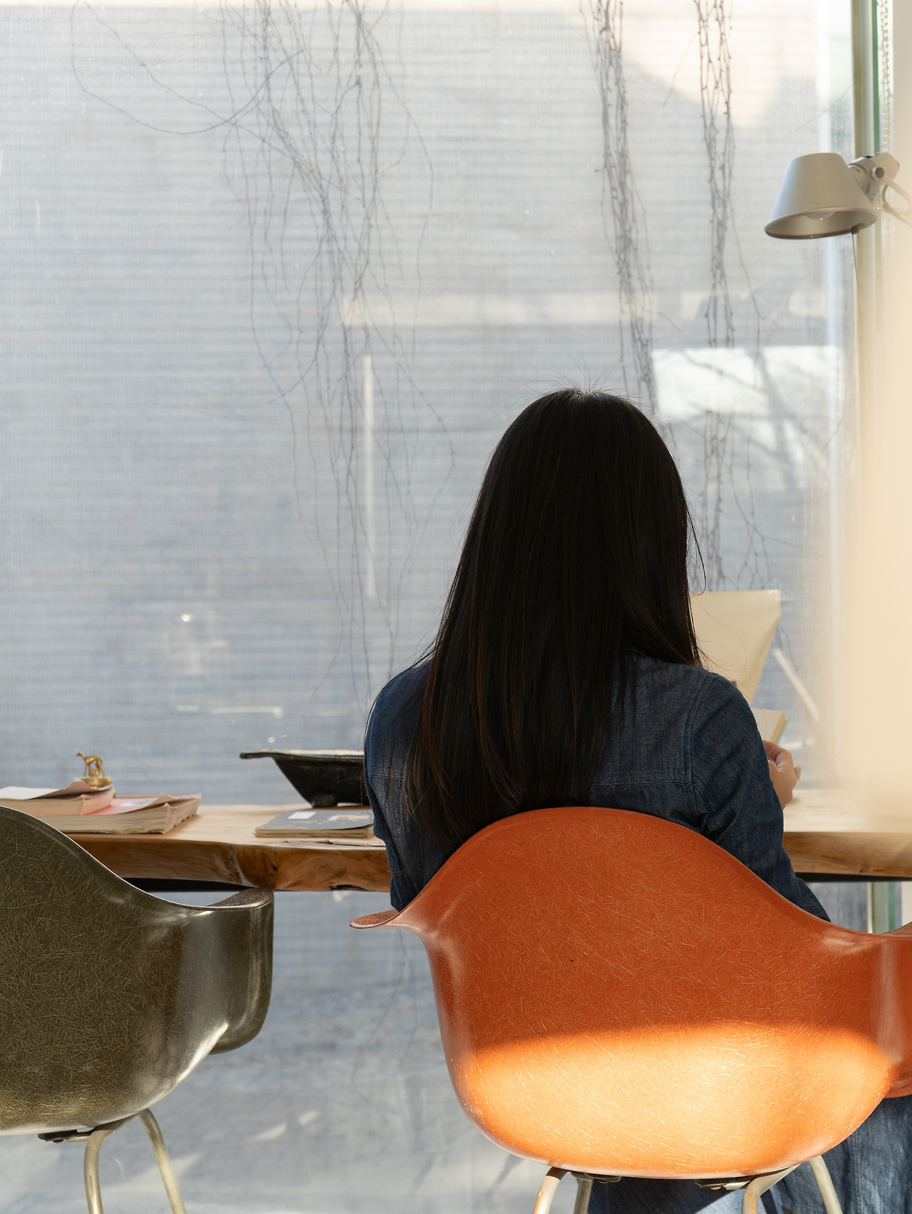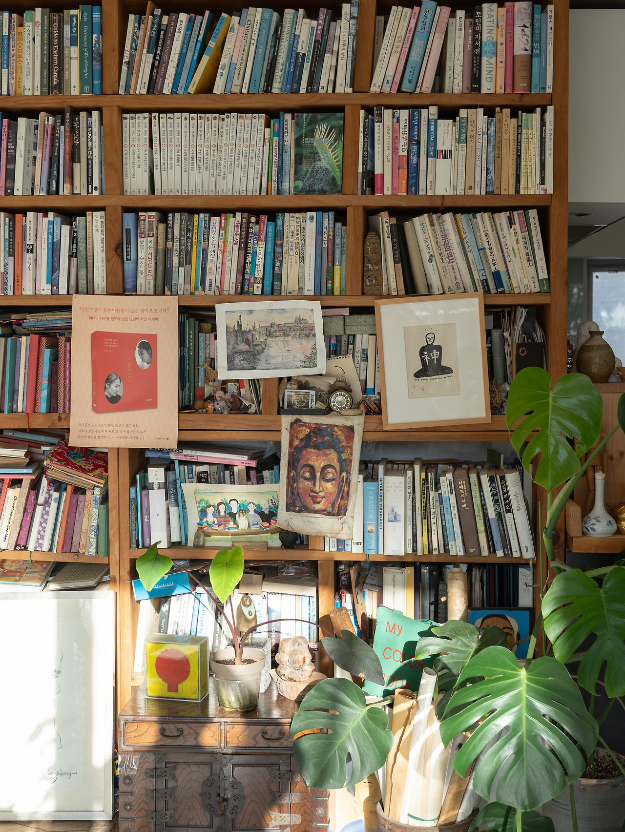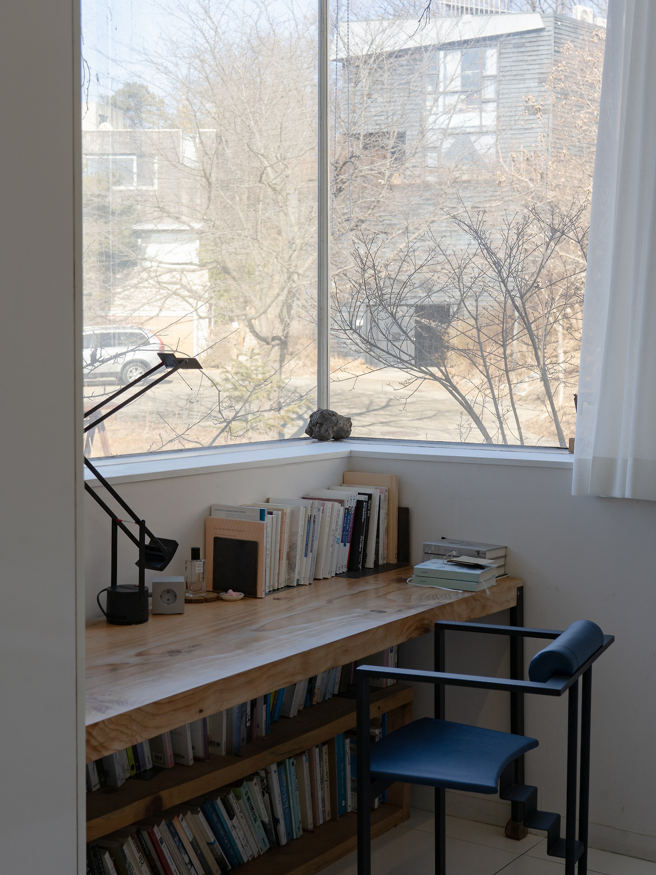 그리고 저 역시 이 공간의 영향을 많이 받고 있어요. 언제든 손을 뻗어 관심 있는 책을 꺼내 읽을 수 있고, 명상할 때 기운을 얻을 수 있는 소박한 자연도 펼쳐져 있죠. 그런 환경 덕분에 잠시 멈춰 제 자신을 돌아볼 여유를 가질 수 있어요. 저에게는 이곳이 최고의 작업 공간인 셈이죠.