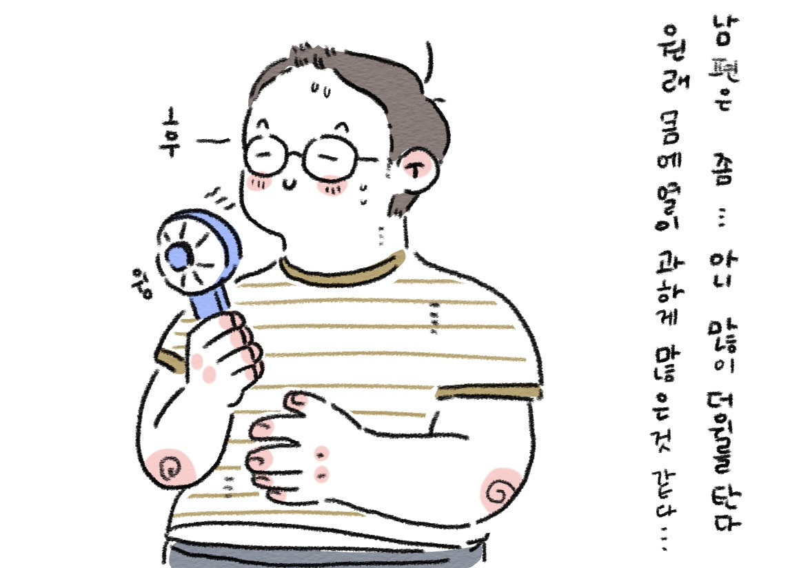 남편은 평소 더위를 정말 잘탄다.