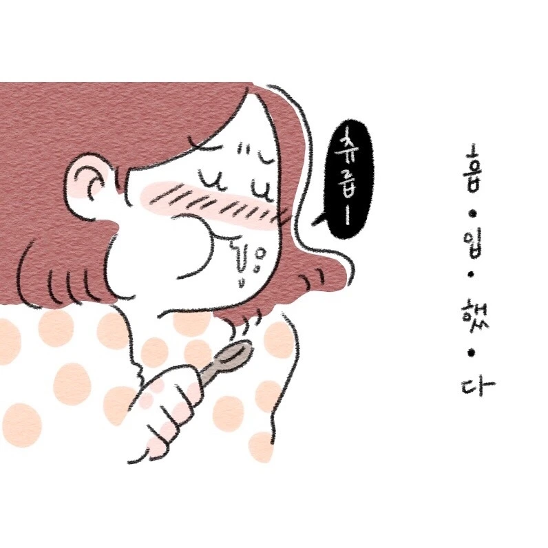 아주 큰 사발에 부어서 냠냠 먹었다.