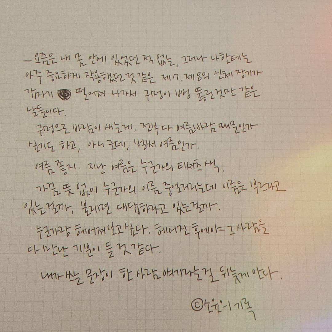 내가 쓰는 문장이 한 사람 얘기라는 걸 뒤늦게 안다.
