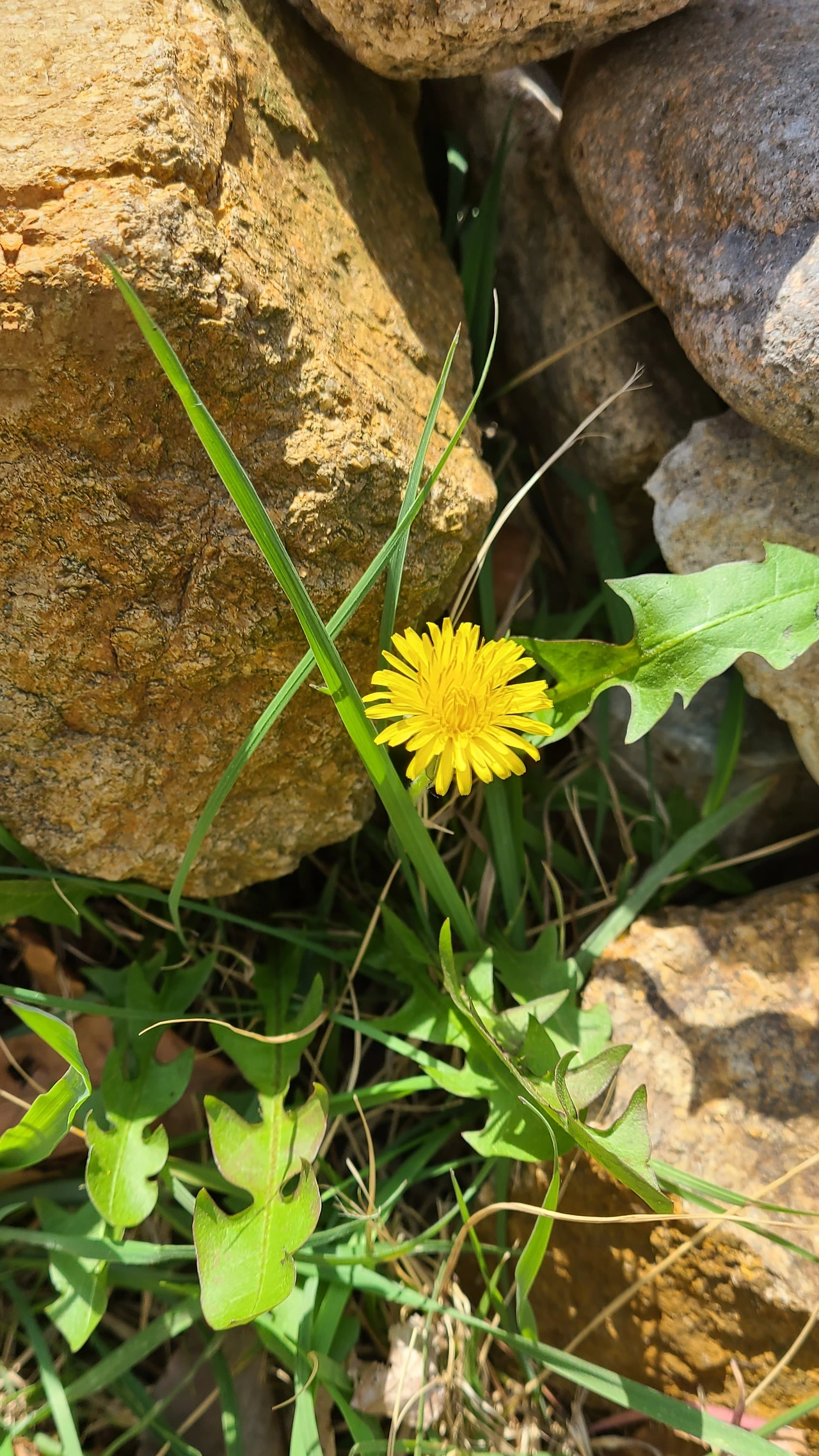 보도블록 사이에서 씽긋