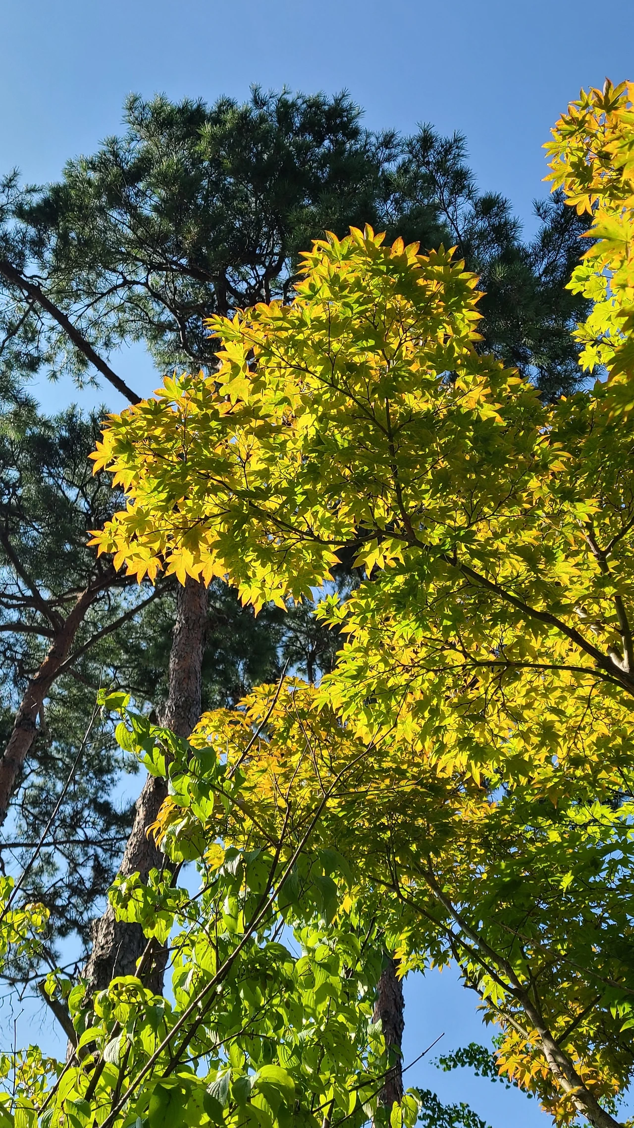 푸른 잎을 울긋불긋 물들이며