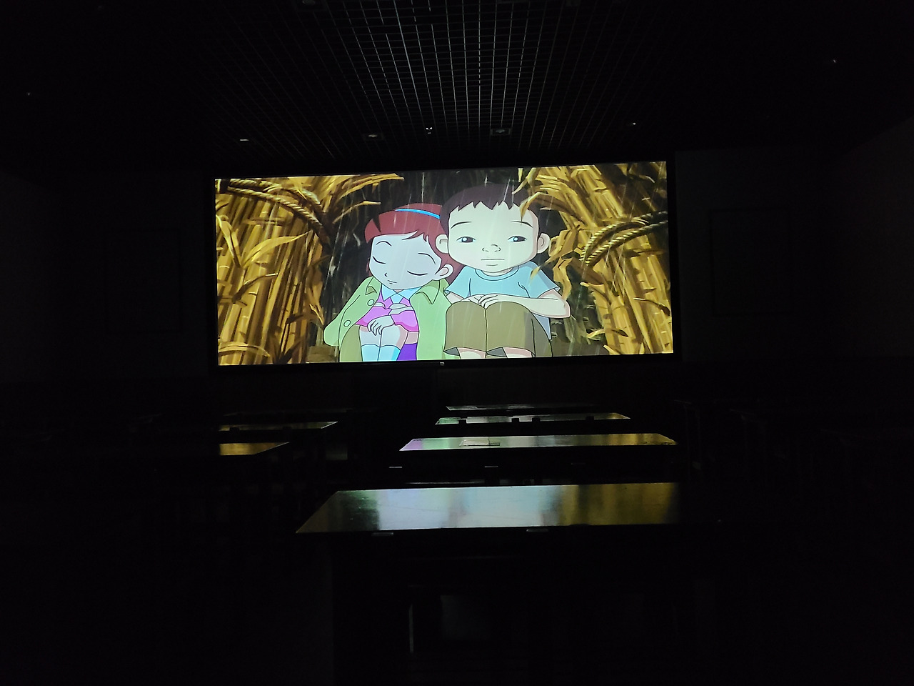 작품 전시실을 돌아 나오면 영상 관람실이 기다린다. 육중한 문을 열고 들어가니 깜깜하다. 암순응 후에 벽에 보이는 시작 스위치를 누른다. 3년 전에 본 것 같은데 어제 일처럼 누르며 스스로 놀란다. 버튼에 손을 떼자 책걸상 맨 앞, 칠판 위치의 스크린에서 애니메이션이 시작된다. 아이들은 작은 나무 의자에 앉아 열심히 감상한다.