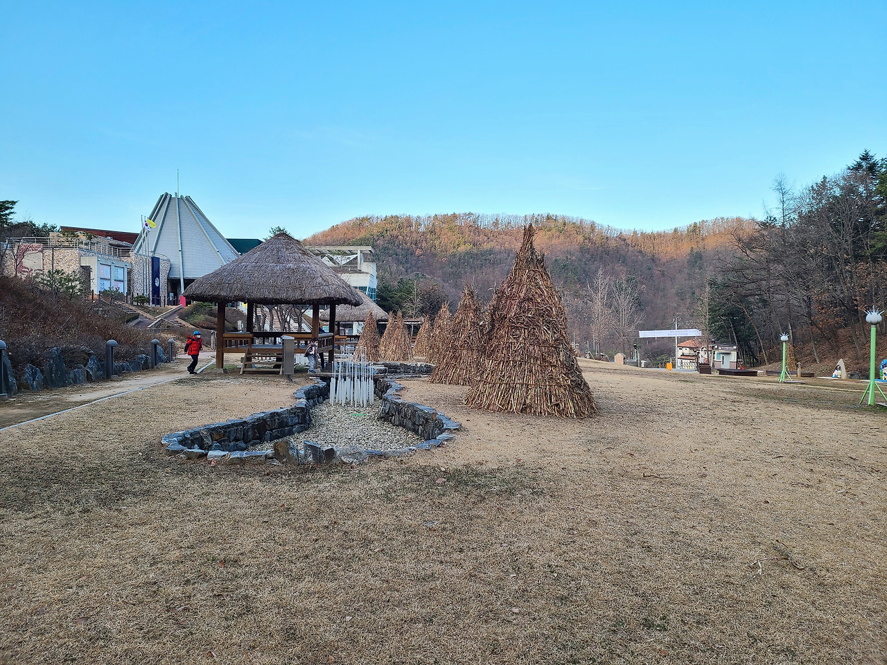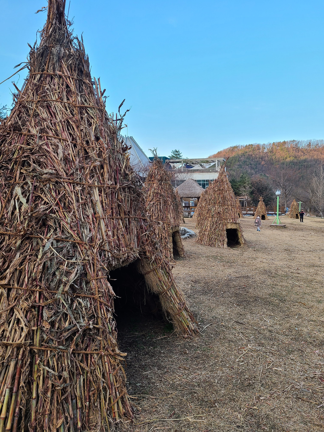 수숫단 움집을 형상화한 신비로운 조형물 사진을 한 컷 찍고 이제 밖으로 나간다. 나가는 순간까지 철저한 방역을 하고서. 코로나 때문인지 겨울이어서인지 인적이 드문 문학관을 조용히 나온다.