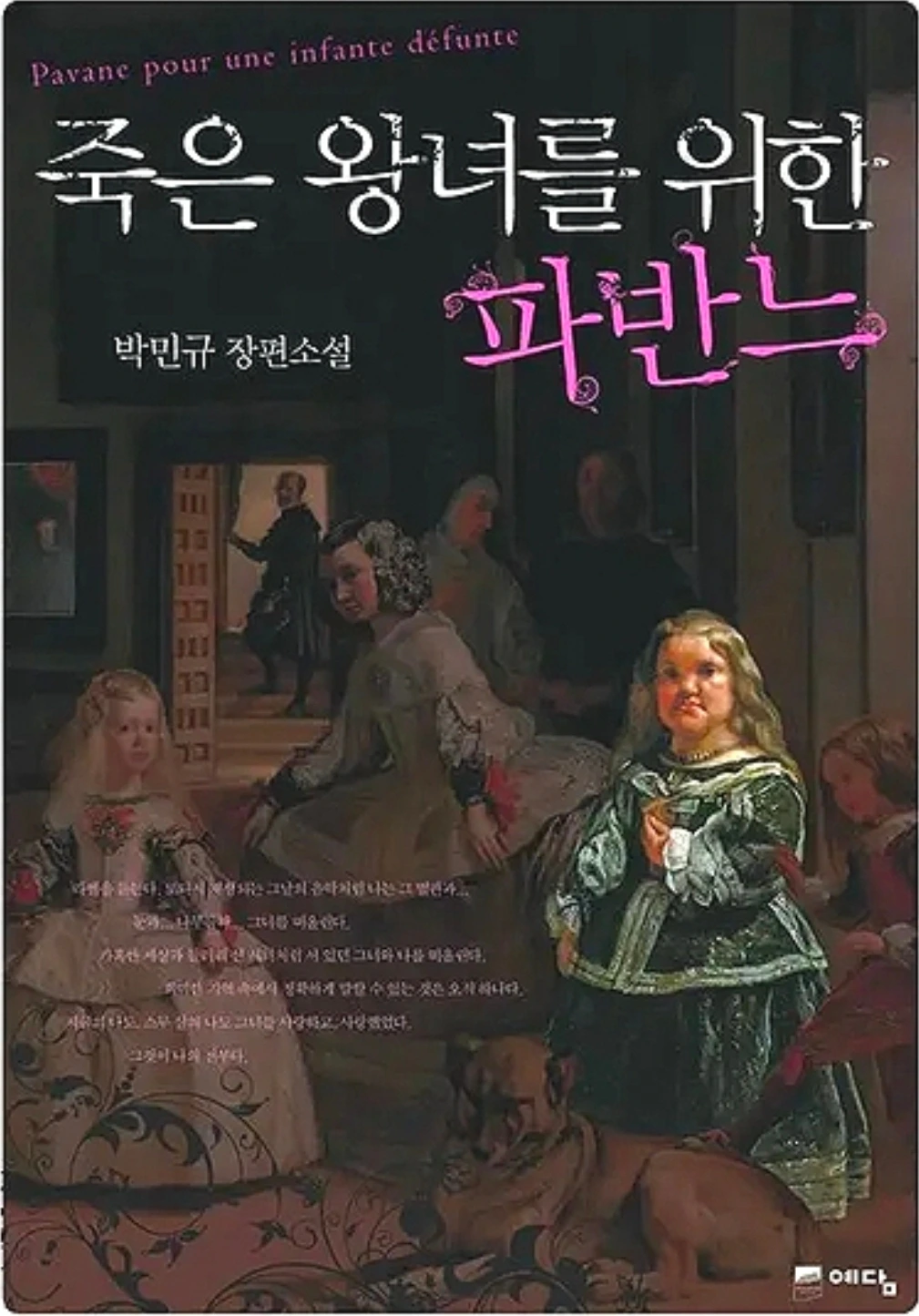 영화의 원작 표지에는 Las Meninas 이 실려 있었습니다. Diego Velázquez의 그림《시녀들》입니다. 그림을 보는 순간, 오래전 독서지도사 자격증을 준비하며 읽었던 《바르톨로매는 개가 아니다》가 떠올랐습니다. 난쟁이 앞에 엎드린 개 한 마리에서 이야기를 길어 올린 작품이었습니다. 이 번엔 난쟁이를 돋보이게 해 둔 것을 보니 죽은 왕녀로 생각하나 봅니다. 서양화 중에 제일 많이 연구되었다고 하니 많은 작가들에게 상상과 영감을 주는 역할을 하는 명작입니다.