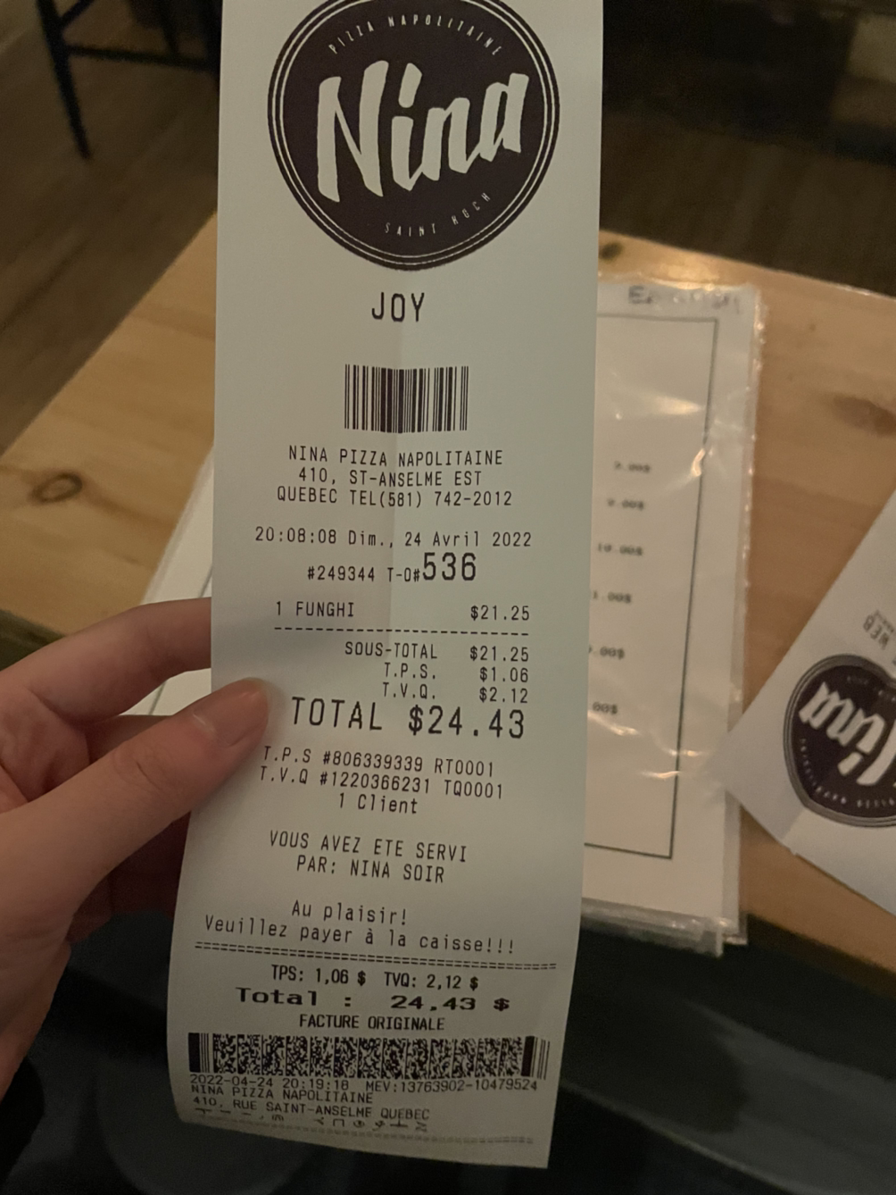 또 한 가지 떠오르는 인상적인 점은 한국에서는 스타벅스를 제외하고는 주문자의 이름을 부르는 경우는 극히 드물고 모두 781과 같이 3자리 숫자처럼 대기번호표를 받고 번호로 사람을 호출한다. 한국에서는 왜 사람의 이름으로 불러주지 않을까 생각했다. 영수증의 한가운데에 내 이름(Joy)이 적혀 있는 것을 보고 말로 형용할 수 없는 느낌이 들었다. 한국이었다면 "285번 손님~ 주문하신 음식 나왔습니다~"라는 익숙한 문장으로 나를 호출했을 텐데 여기서는 내 이름으로 나를 불러주었다. 뭐랄까. 있는 그대로의 나로 인정받는 느낌이었달까. 약간의 꼴값을 떠는 것처럼 보일 수도 있지만 그래도 한 번쯤은 생각해보고 싶고 많은 사람들과 나의 생각을 공유해서 소통해보고 싶은 주제이기도 하다. 영수증, 이게 뭐라고 나를 이렇게 감동시켰을까.