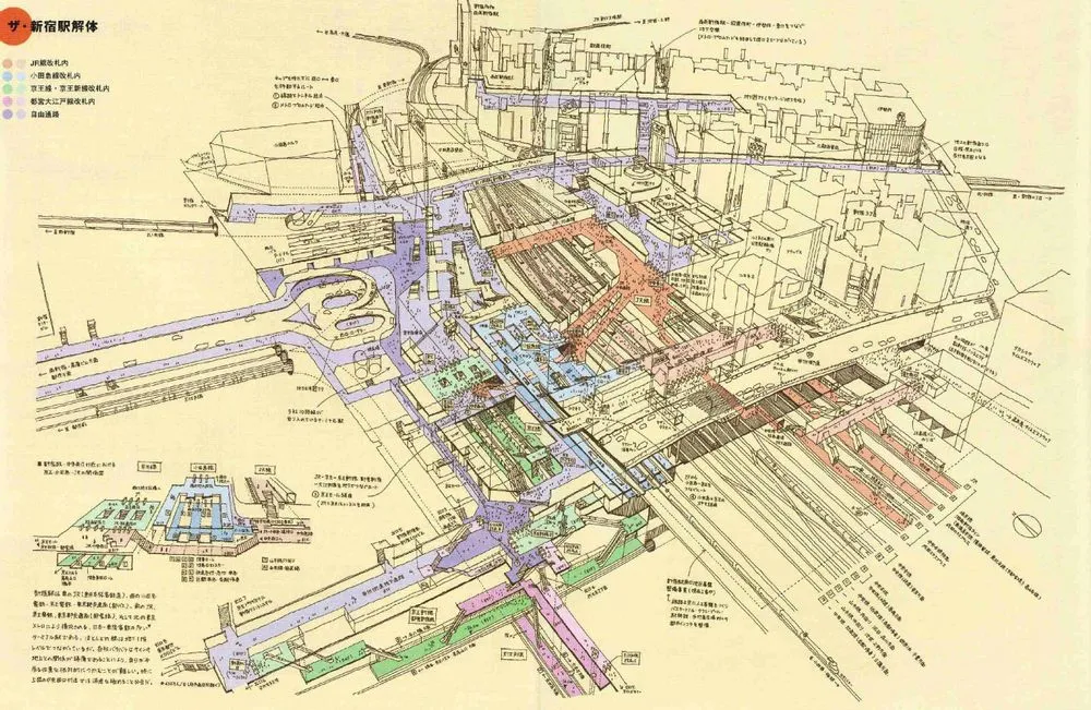 사실 신주쿠역, 혹은 신주쿠 버스터미널을 처음 찾는다면 어디부터가 지상 1층이고, 어디부터가 지하인지조차 구분하는 게 쉽지 않다. 아니, 구분조차 의미가 없다. 난 분명 지하 1층이었는데도 밖으로 나갈 수 있는가 하면, 분명 2층에 있었는데도 밖으로 나갈 수 있기 때문이다. 신주쿠역을 직간접적으로 통과하는 도로, 철도는 모두 각기 다른 층위로 역을 통과한다. 말 그대로 입체적이다.