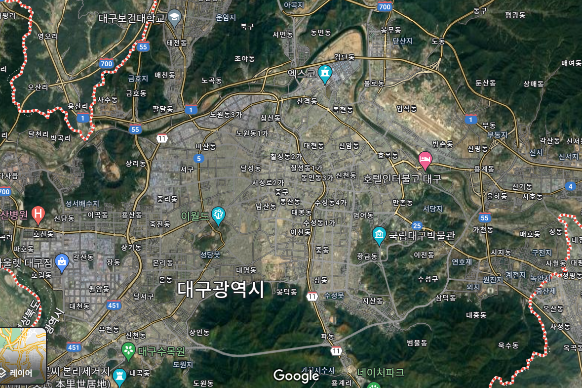 대구가 대도시인 걸 몰랐던 게 아니다. 지독한 지리덕후였던 내게 대구의 인구, 자치구의 수, 기차역과 고속도로 IC의 이름이나 개수 따위의 건 자다가도 읊을 수 있는 수준이었지만 분명 내 예상보다 더 큰 도시임엔 분명했다.