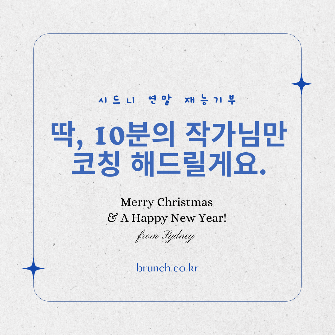 책을 낼 수 있도록 저를 퍼트려(?) 주신 독자님들께 보답하고 싶기도 하고, 저를 성장시킨 브런치가 흥했으면 하는 마음에 연말기념 작은 재능기부를 해보겠습니다.