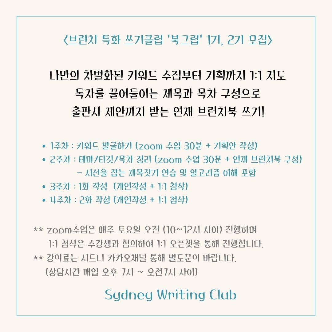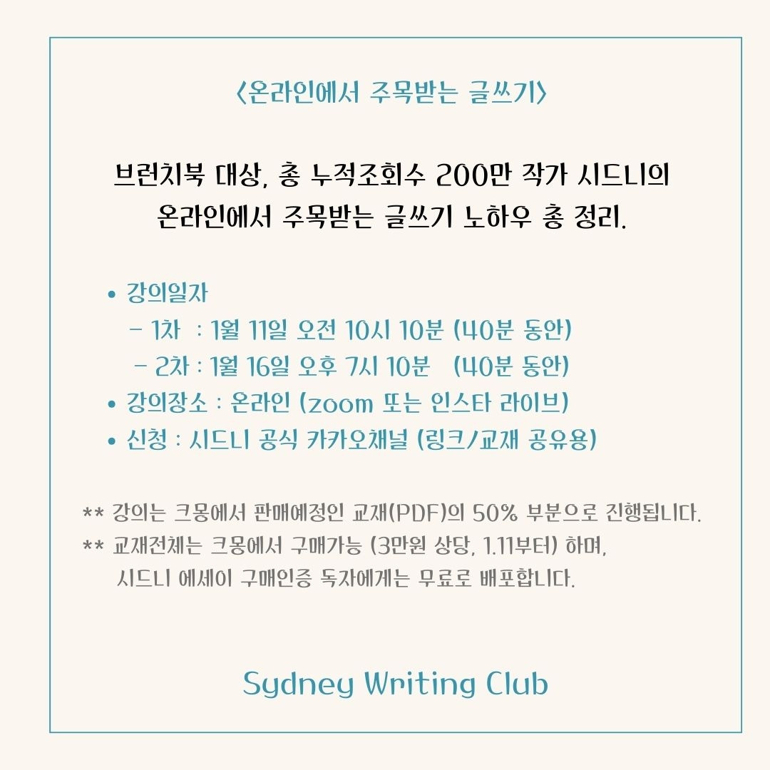 시드니의 온라인에서 주목받는 글쓰기 강의 오픈합니다.