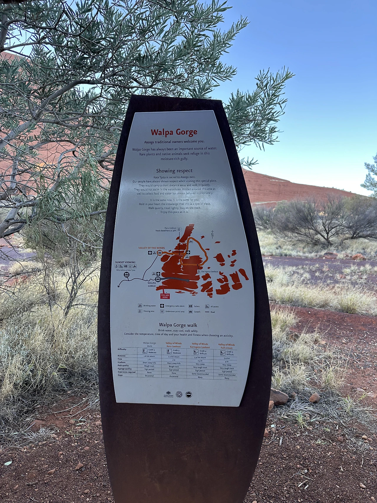 우리는 카타츄타의 ‘왈파 워크(Walpa Walk)’를 천천히 걸었다. 바람의 계곡이라는 이름처럼 협곡 사이를 바람이 스쳤다. 호주의 겨울이라 공기가 차가웠지만 해가 뜨자 적당히 따뜻했다. 문제는 아이였다. 열 살 아이에게 1~2km의 거리와 모래길은 조금 벅찼다. 주변을 둘러봐도 어린아이는 없었다.