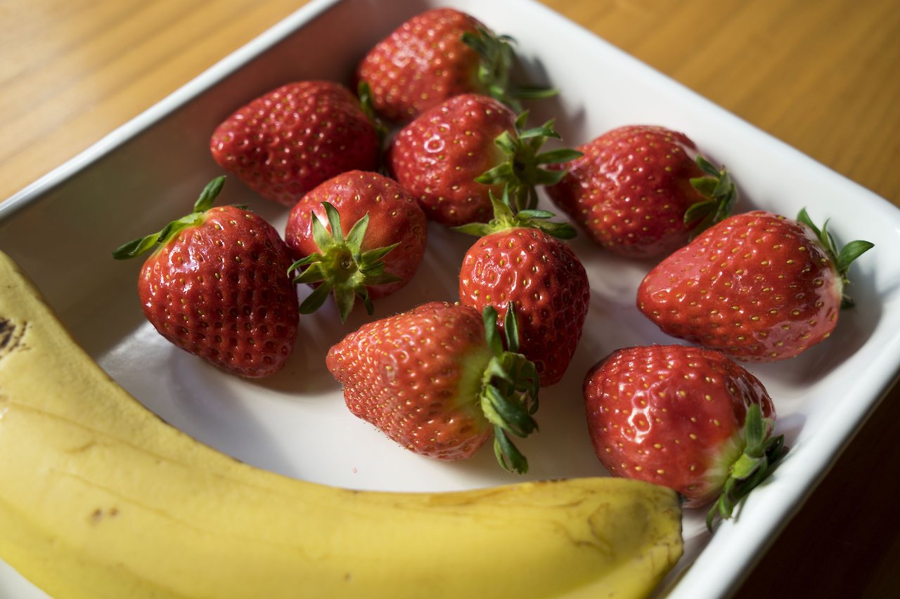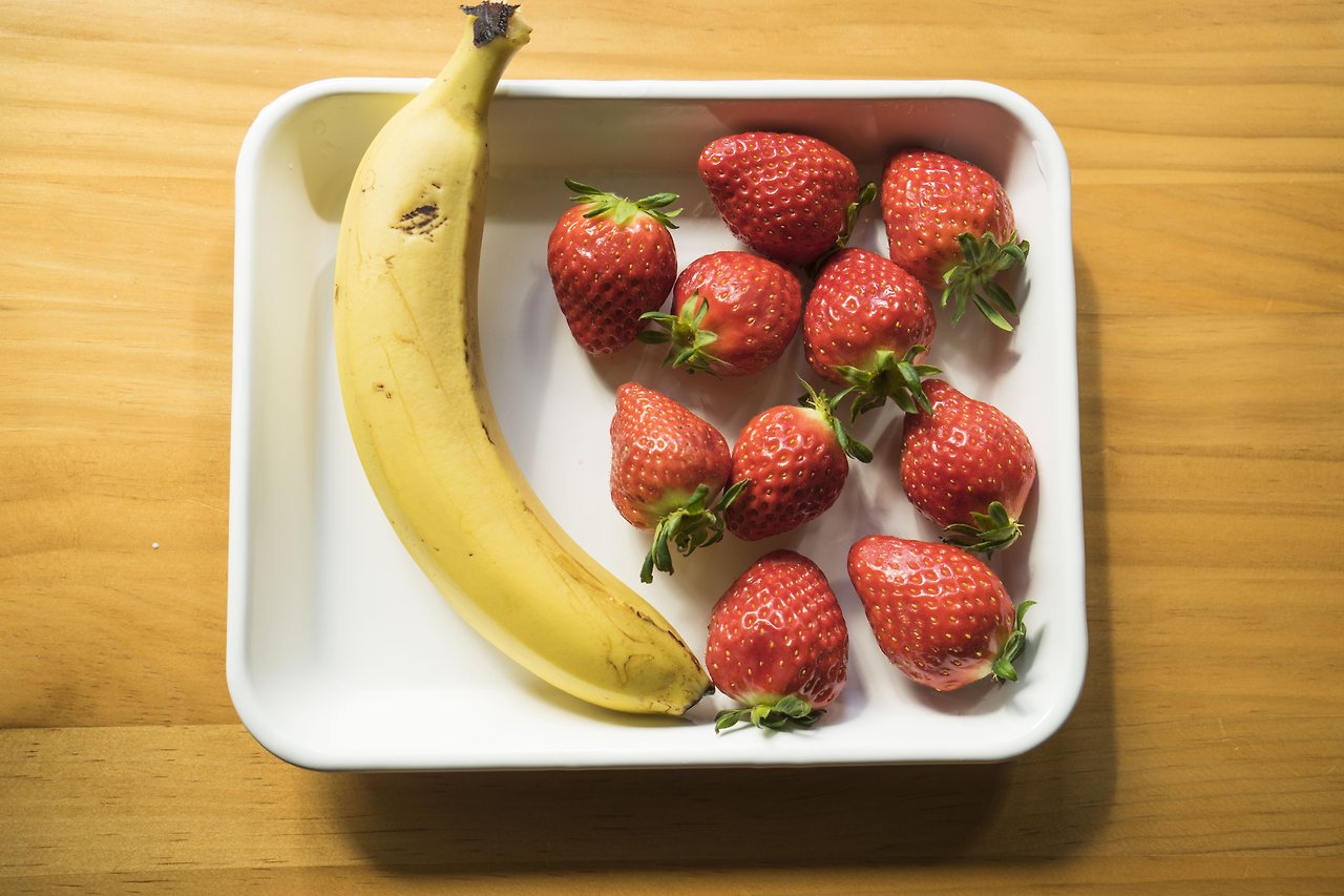 그 사이 토핑 재료를 손질해주세요. 예쁜 꽃을 보면 기분이 좋아지듯이, 이렇게 신선한 재료들을 보면 참 기분이 좋습니다. 자연이 주는 색감은 그 어떤 것으로도 대체할 수 없는 것 같아요. 딸기는 베이킹소다 물에 담가 잘 씻어주고, 바나나는 2가지 스타일로 준비 해보았습니다.