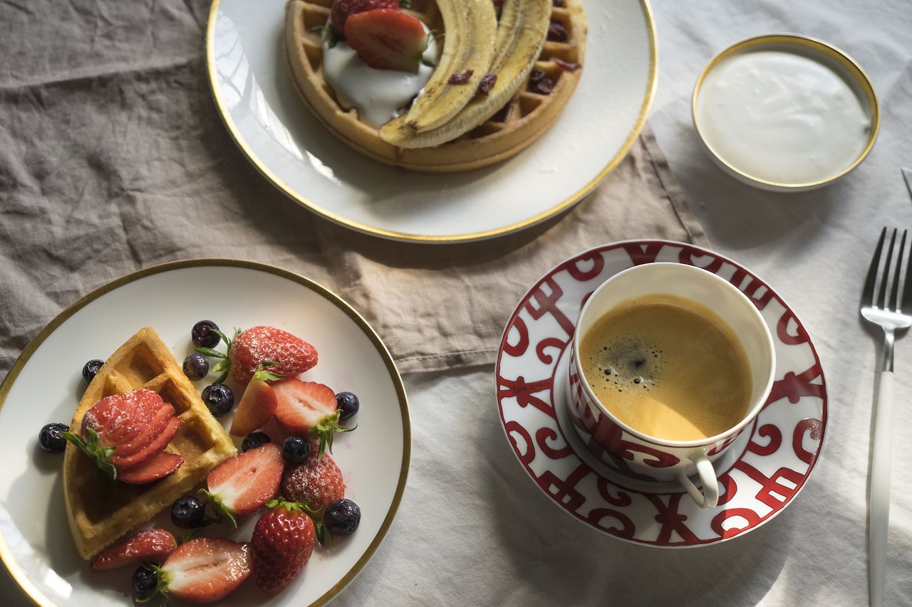 몇 컷 찍고보니, 커피 잔이 눈에 걸려요. 그래서 제 커피 잔은 골드와 조금 더 잘 어울리는 레드로 바꾸었습니다. 한바탕 사진을 찍고 여유있는 시간을 가지나 싶지만, 막상 배고파서 거의 흡입하는 수준으로 비웠습니다.