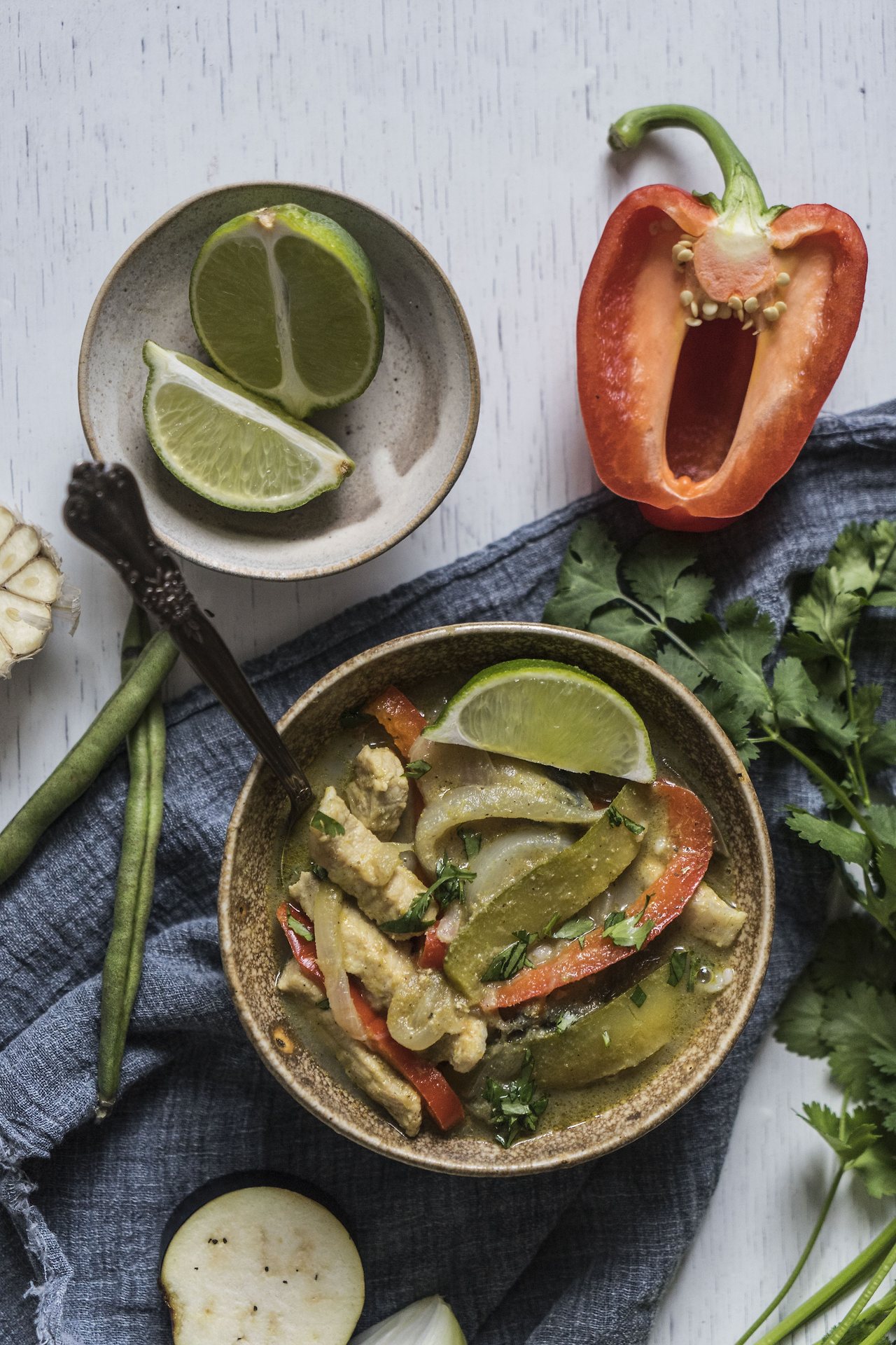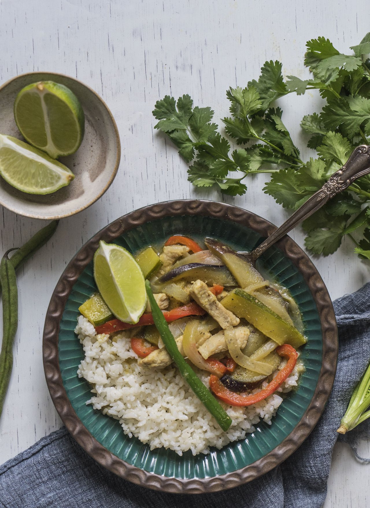 여기에 바질, 라임, 고수 등은 취향껏 가감하면 그린커리가 완성이에요. 해산물이 있다면, 채소와 한 번에 볶아주세요. 아, 그린커리는 우리나라 커리처럼 되직한 스타일은 아니에요. 농도는 코코넛 밀크에 의해 조절됩니다.