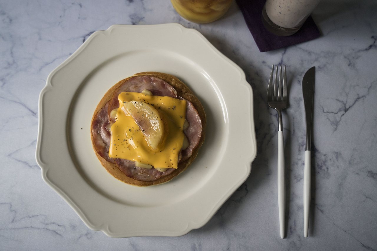 햄치즈 복숭아 팬케이크