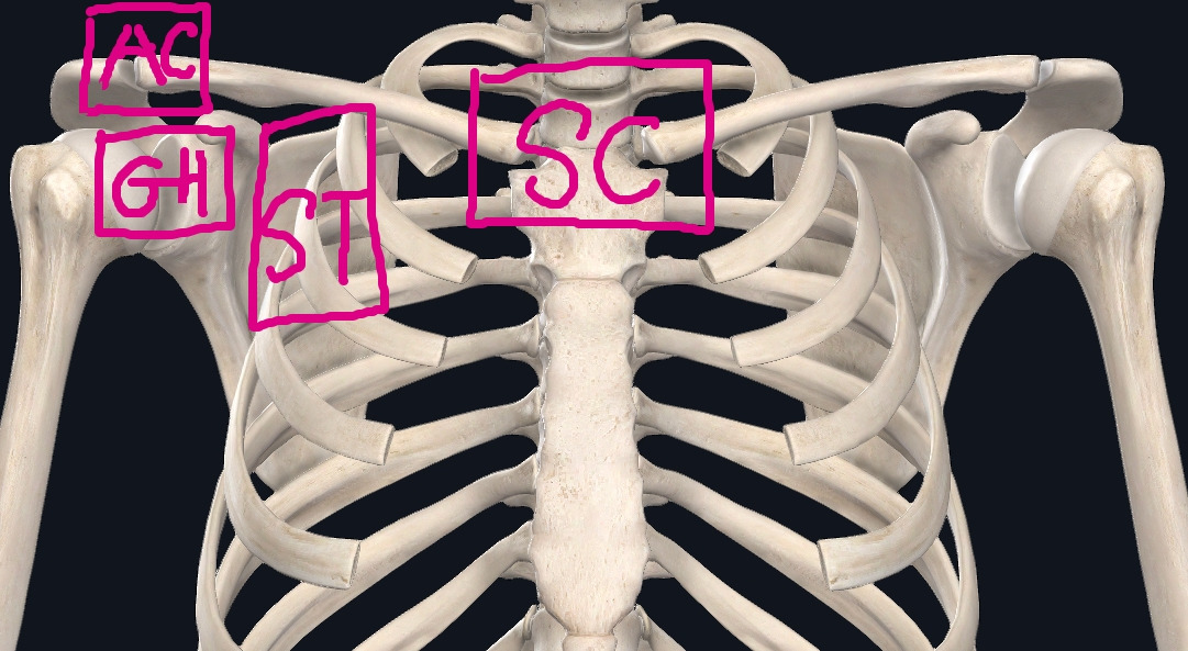 위의 3가지 관절에 주목해라 (ST제외) SC, GH, AC 관절의 탈구 혹은 아탈구가 생길 수 있다.