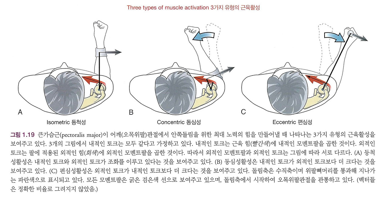 근육활성의 3가지 유형에 대한 자세한 내용은 3장에서 설명 여기서는 짧게 요약을 할 것이다.