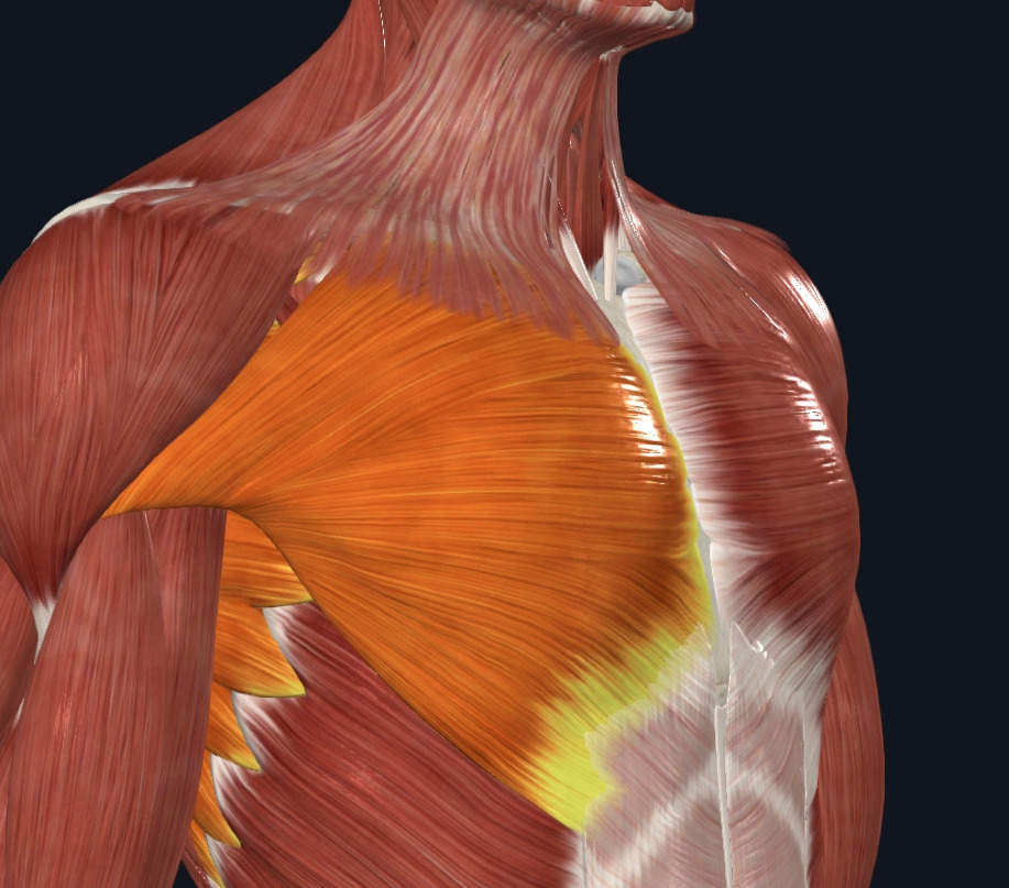 쉽게 말하자면 몸통 기준으로 수평으로 미는 동작은 날개뼈 간의 거리를 멀어지게 하는 근육들의 참여가 높다.