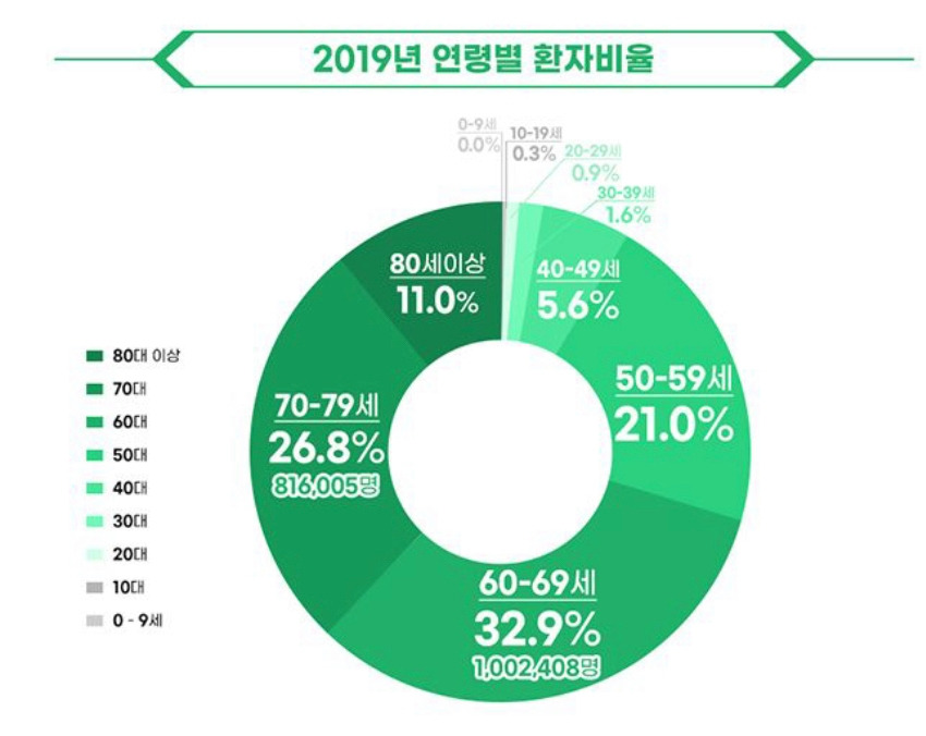 위의 자료는 2019년도 퇴행성 관절염에 관련된 자료이며, 인터넷의 검색을 해보면 정확한 정보를 찾을 수 있을 것이다.