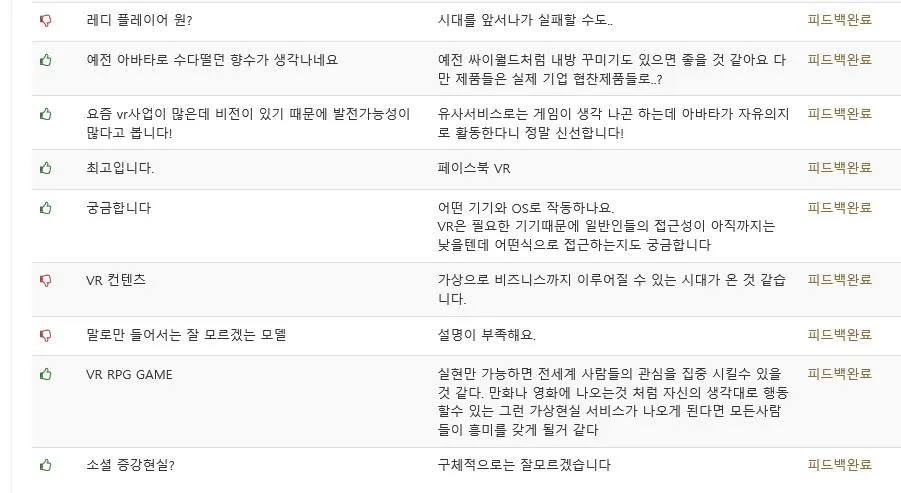 난 개인적으로 관심이 있어서 관련 콘퍼런스를 찾아다니고 정보를 얻는 등 관심이 많지만 다른 사람들은 그저 영화에나 나올법한 이야기로 여기는 것 같은 인상이 대부분이었다. 나 혼자 착각에 빠졌었나 싶기도 했다. 다른 인기 있는 모델은 20개 정도 첫인상 평가를 받았다면 나는 고작 7개 정도. 그것도 5명은 '좋아요'이고 나머지 2명은 '별로'.