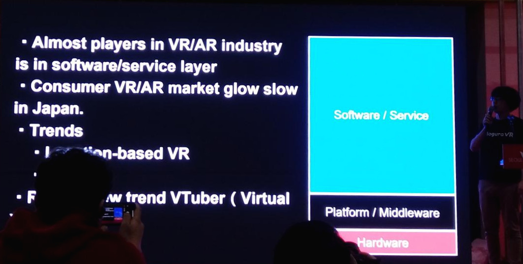 VR열정가인 자신이 보기에 현재 VR/AR 산업의 대부분은 소프트웨어와 서비스에 집중되어 있다. 일본에서 VR/AR 소비자 시장은 느린 성장세를 보이는 경향이다.