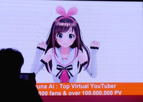 옆의 사진의 Kizuna-ai는 현재 최고의 Virtual YouTuber로서 1,700,000 팬과 100,000,000 이상의 PV를 가지고 있단다.