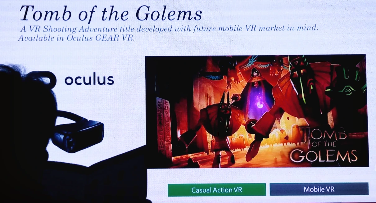 콘텐츠의 힘을 강조한 그는 이어 자사가 내놓을 TOWER TAG라는 VR 게임을 보여주었다.