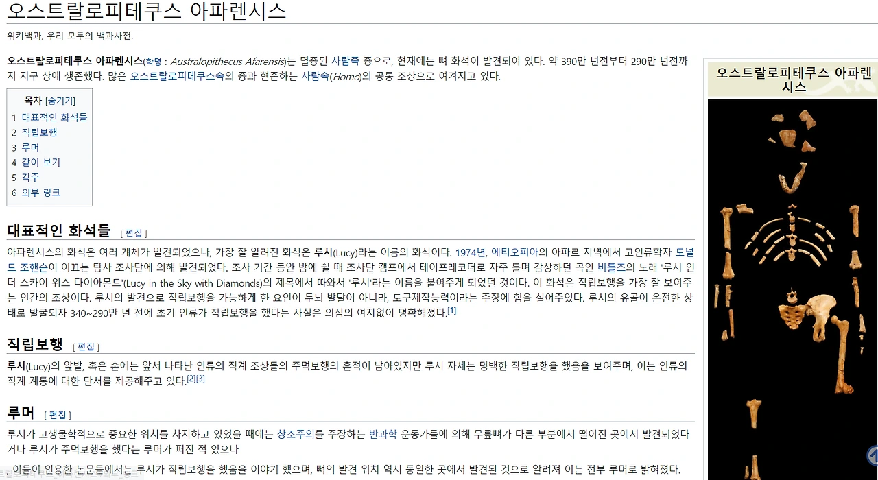 약 320만 년 전, 지금의 에티오피아 북부 하다르 아와시 강은 늘 그래 온 것처럼 물결이 찰랑찰랑 부딪치며 조용히 흐르고 있었다. 노란 보름달이 강 위에 저와 똑같은 그림자를 밝히어 주변을 훤히 비추었다. 홀연 밤하늘 위로 더 눈부시게 하얀빛을 내뿜는 또 다른 타원형의 소용돌이가 불쑥 나타났다. 주변에서 야간 사냥을 하거나 물을 마시던 동물들이 두려움에 휩싸여 울부짖으며 뛰어 달아났다.