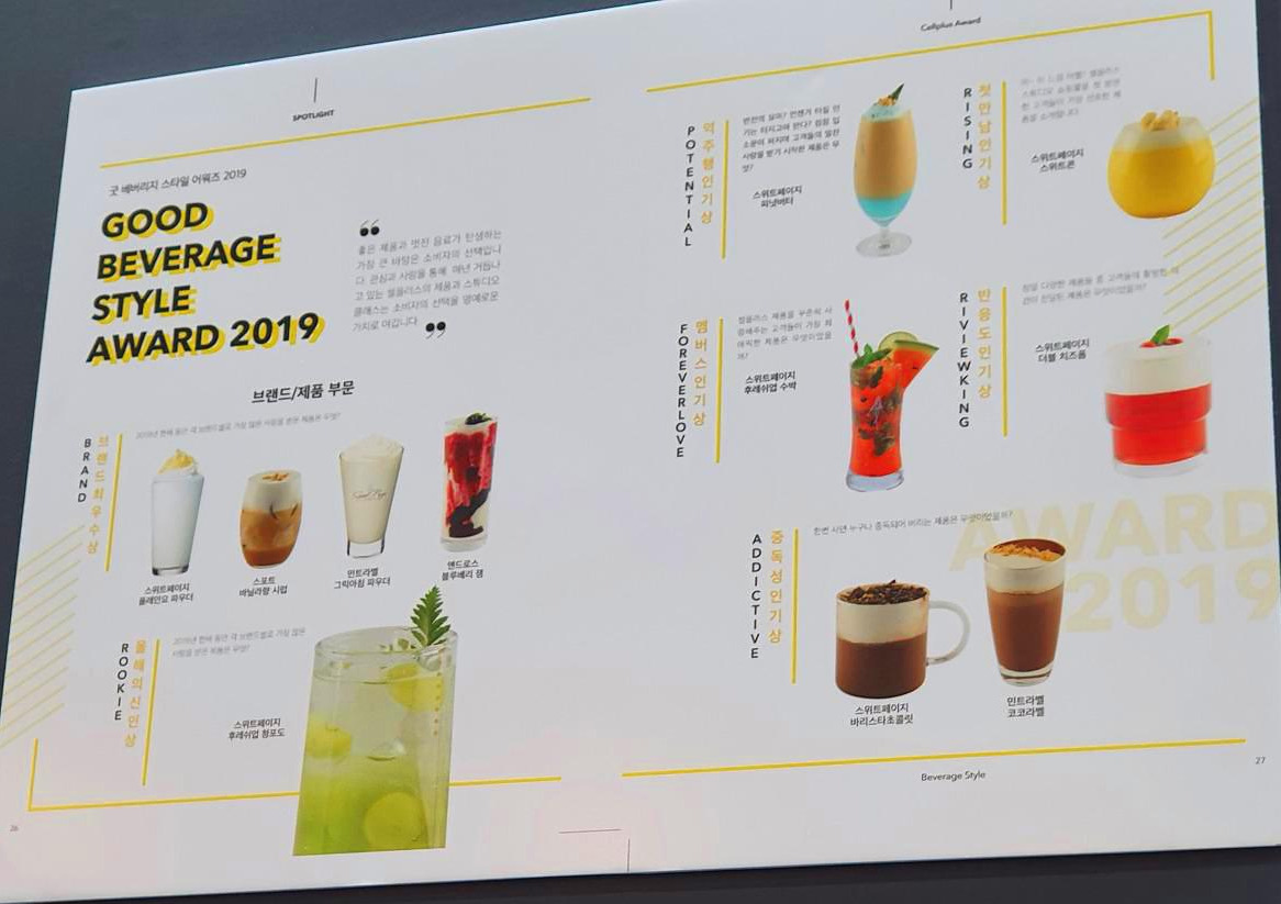 2019년 인기 음료 스타일 어워드 제품들이다. 손이 없어 제대로 찍지 못해 글씨가 흐릿하다.