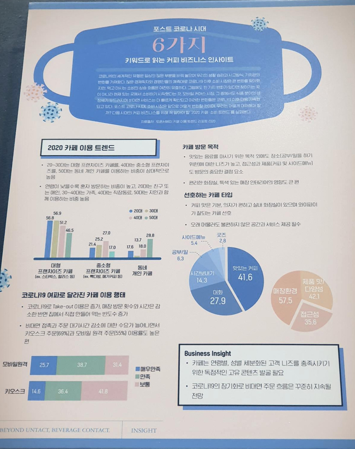 포스트 코로나 시대에 6가지 키워드로 읽는 커피 비즈니스 인사이트였다. 아래 사진을 참조 바란다. 최신 카페 트렌드를 알 수 있게 잘 정리되어 있다.