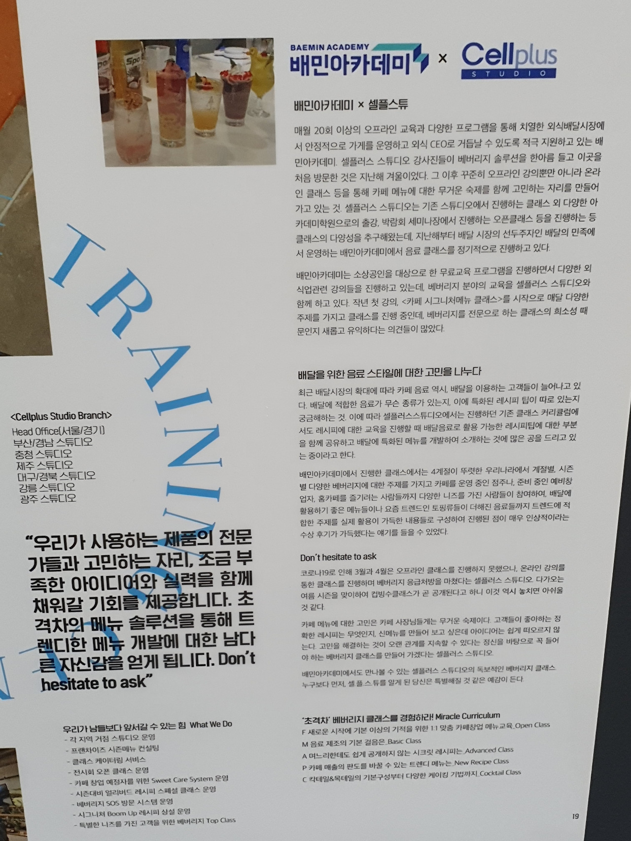 외식 배달 운영에 대해 관심 있는 분은 아래 사진처럼 배민아카데미 에서 훈련받을 수도 있단다.